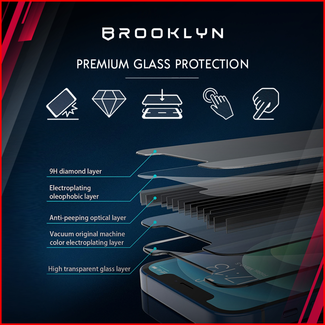 Brooklyn Privacy Easyfit Tempered Glass Iphone 16 15 14 13 12 11 X Xr Xs Max Mini Pro Max Plus Full Cover Anti Spy Prote