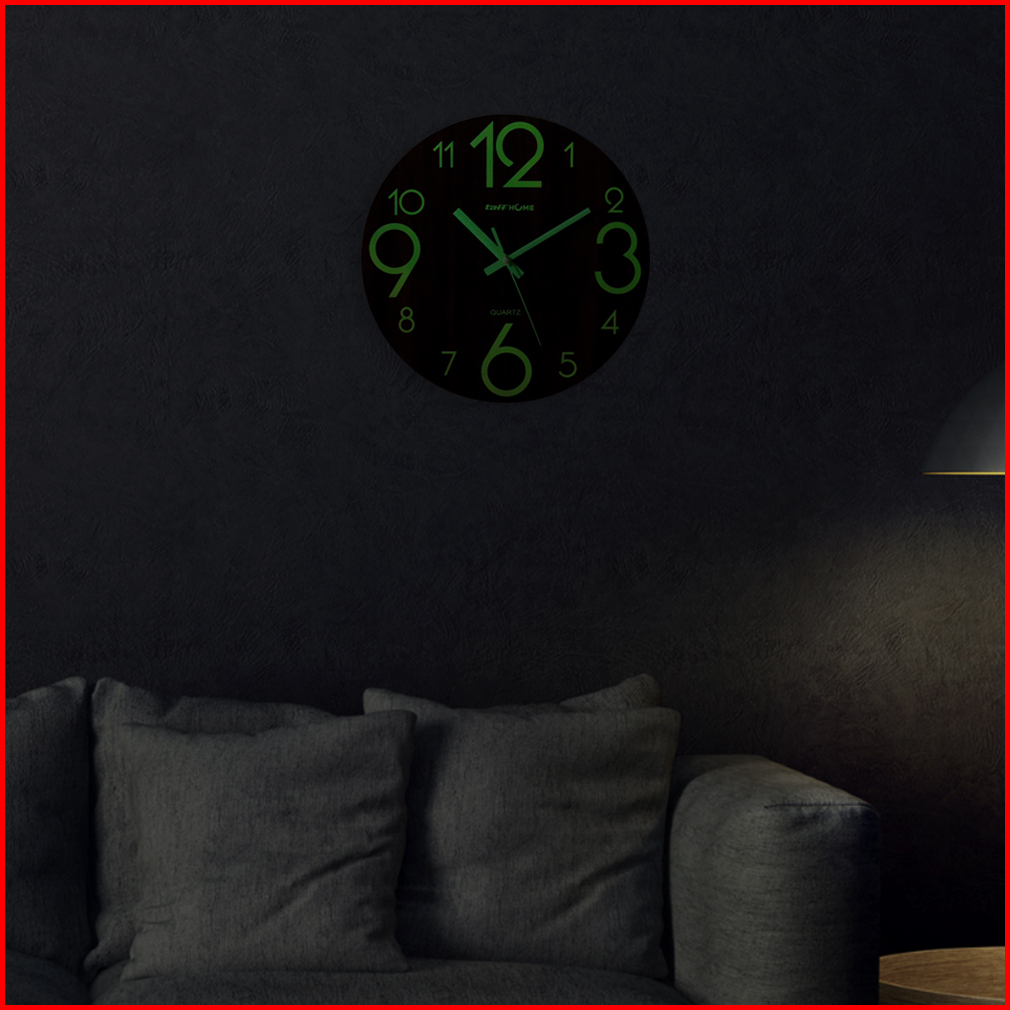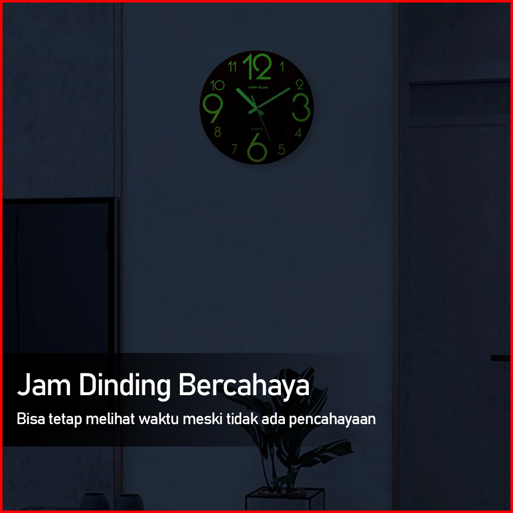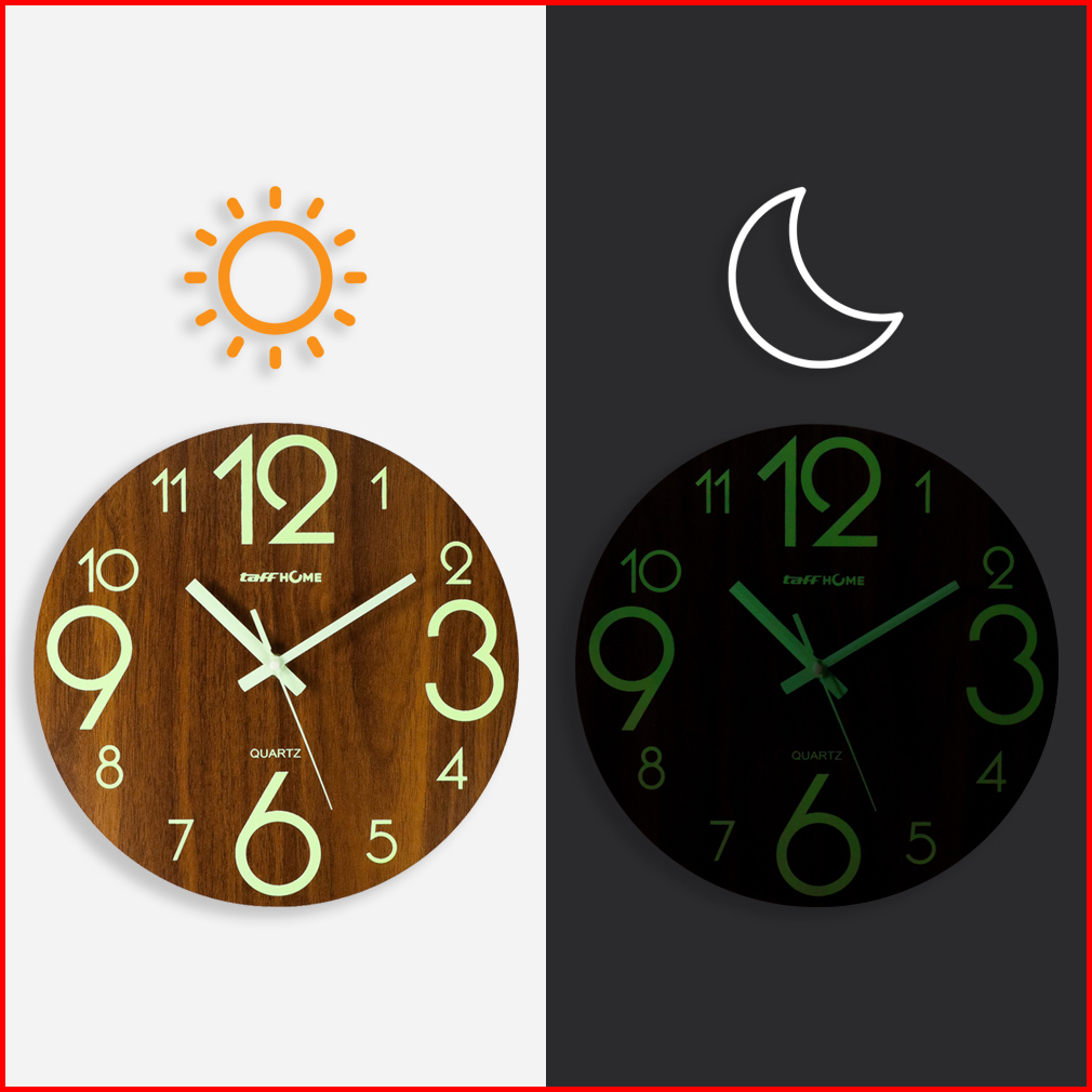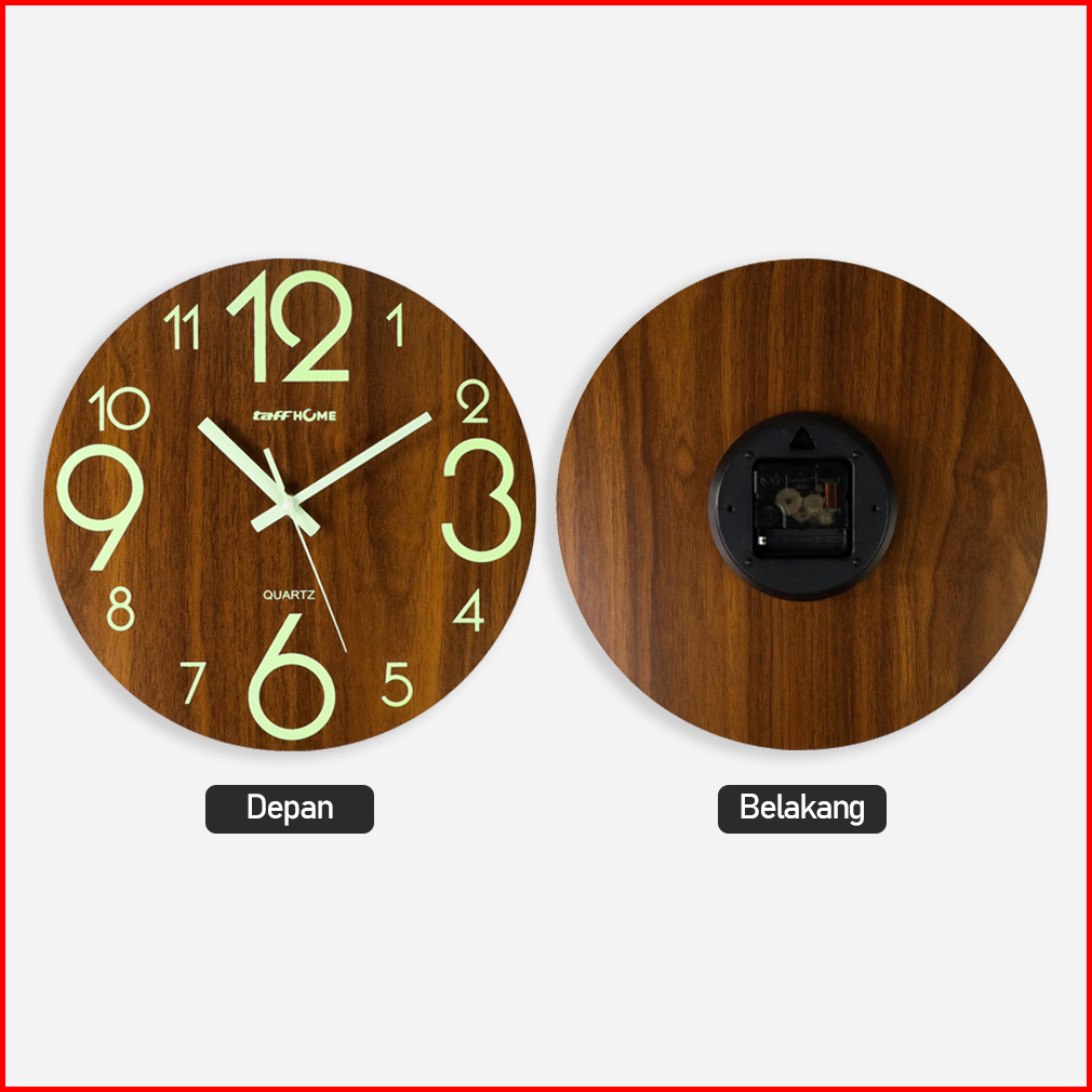Taffhome Jam Dinding Bulat Quartz Luminous Glow In The Dark 30cm Mdb3 - Wooden