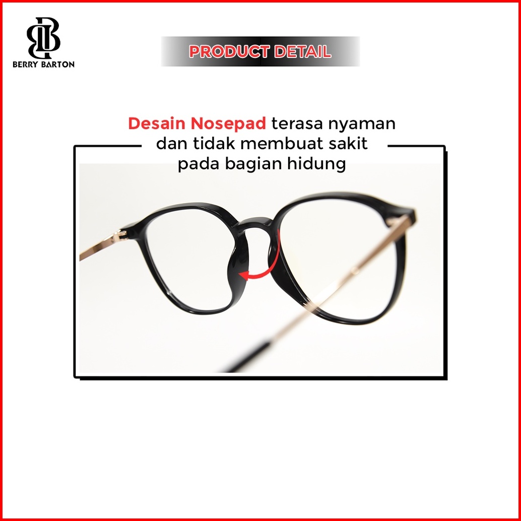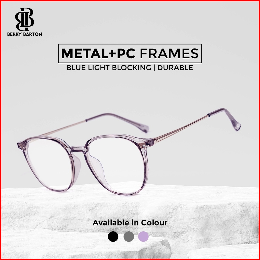 Berrybarton - Kacamata Oval Korea Metal Lensa Minus Anti Radiasi Bluecromic 83078