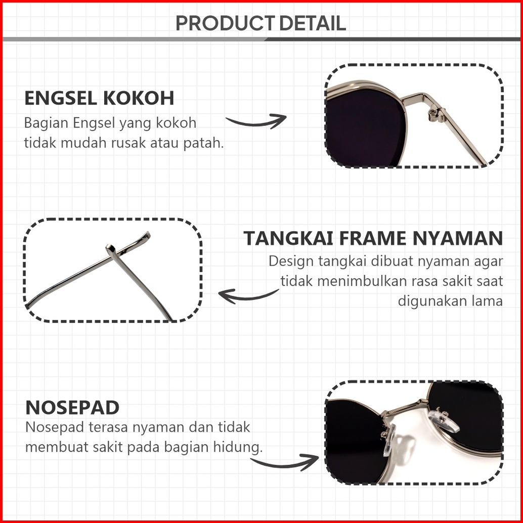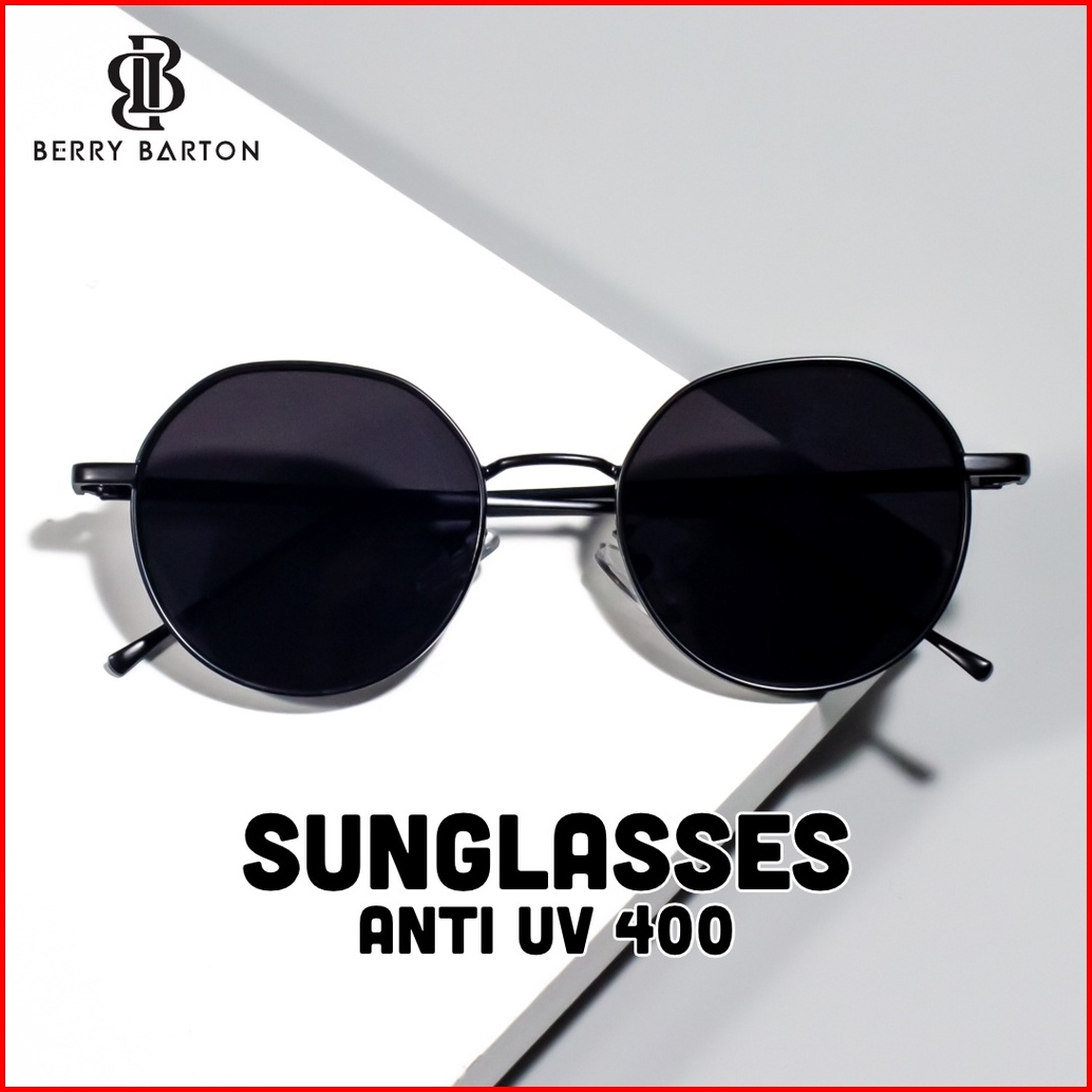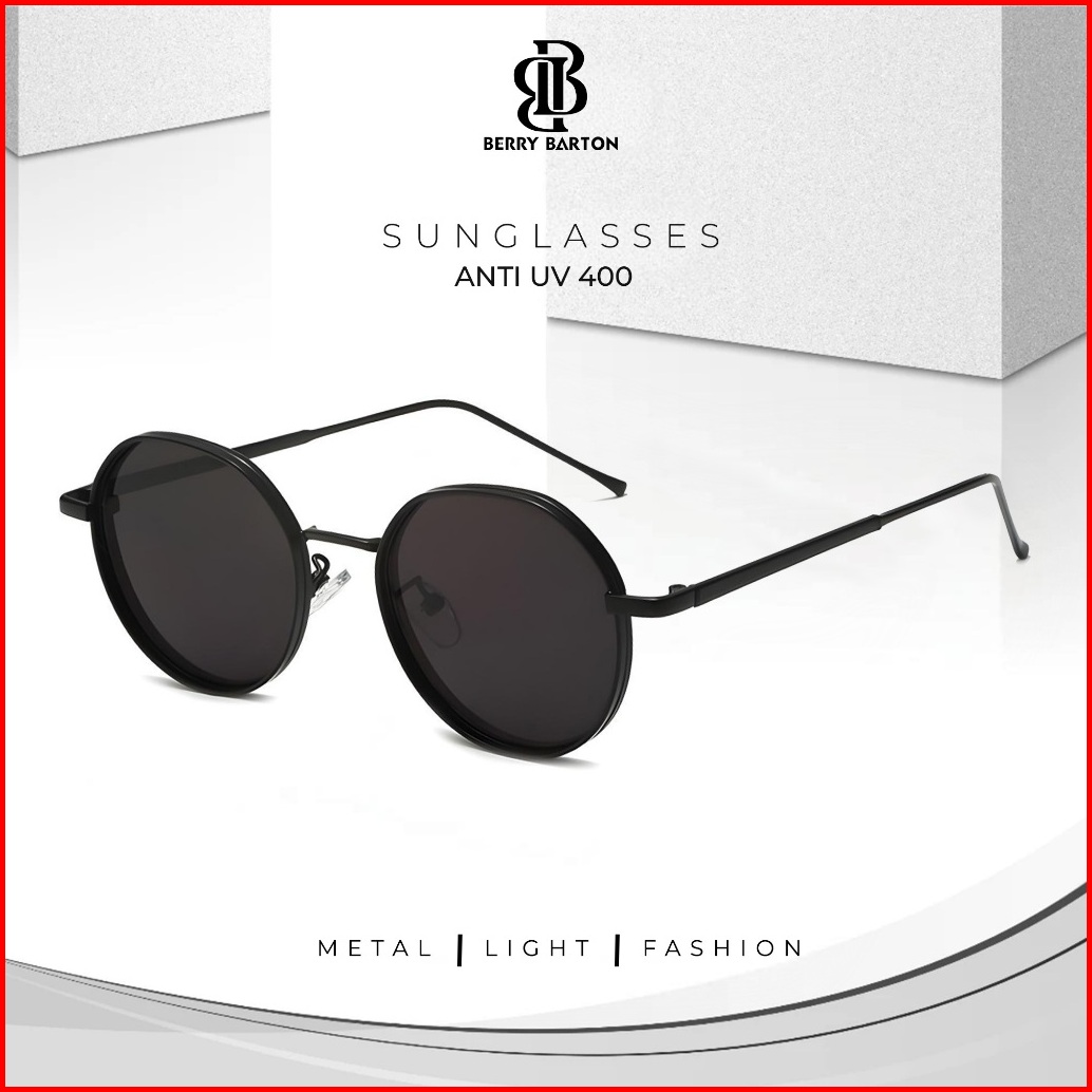 Berrybarton -kacamata Hitam Fashion Style Bulat Metal Sunglasses Anti Uv400 Outdoor Pria Wanita 80656