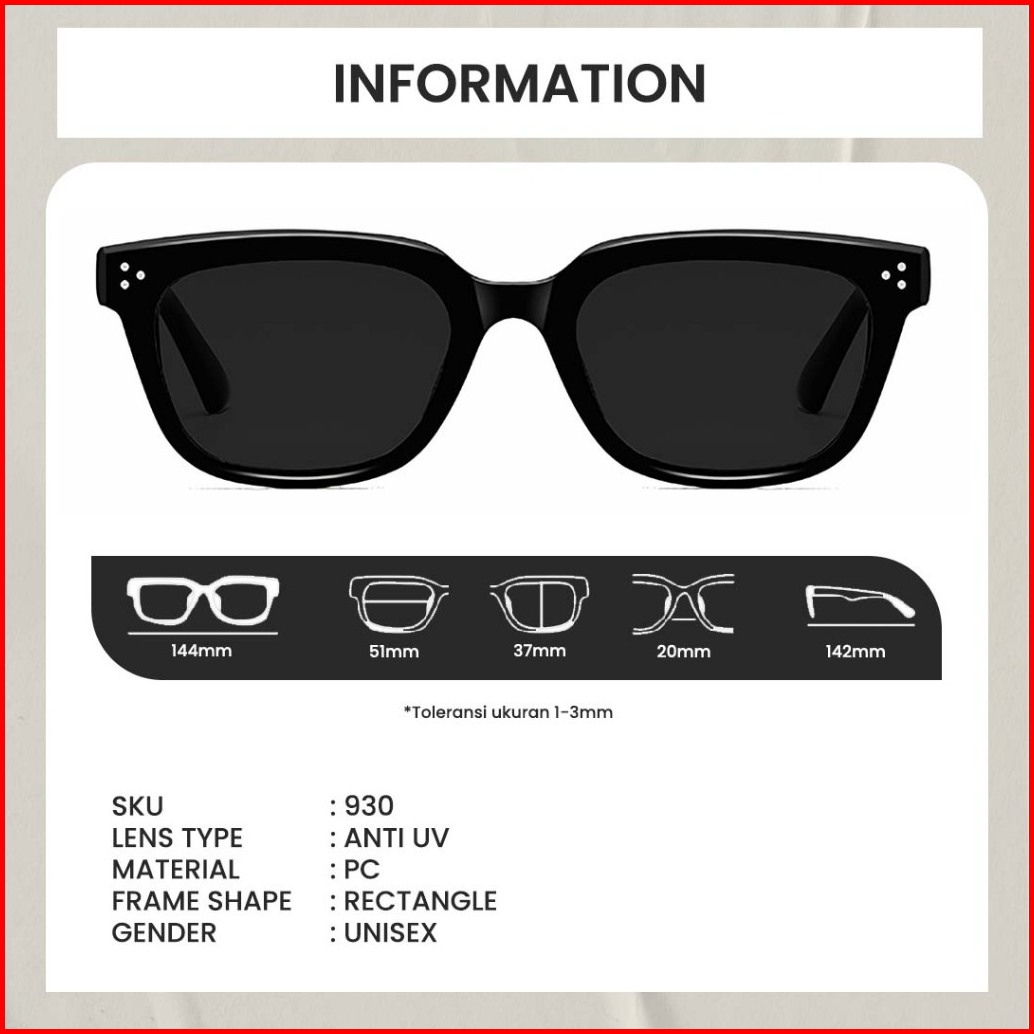 Berrybarton - Kacamata Hitam Rectangle Polycarbonate Sunglasses Pria Wanita Anti Uv400 930 Muse