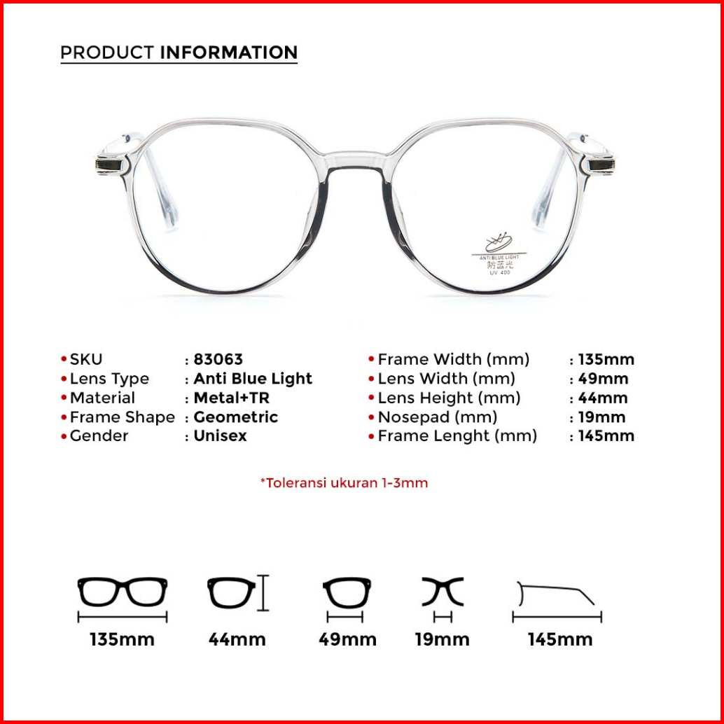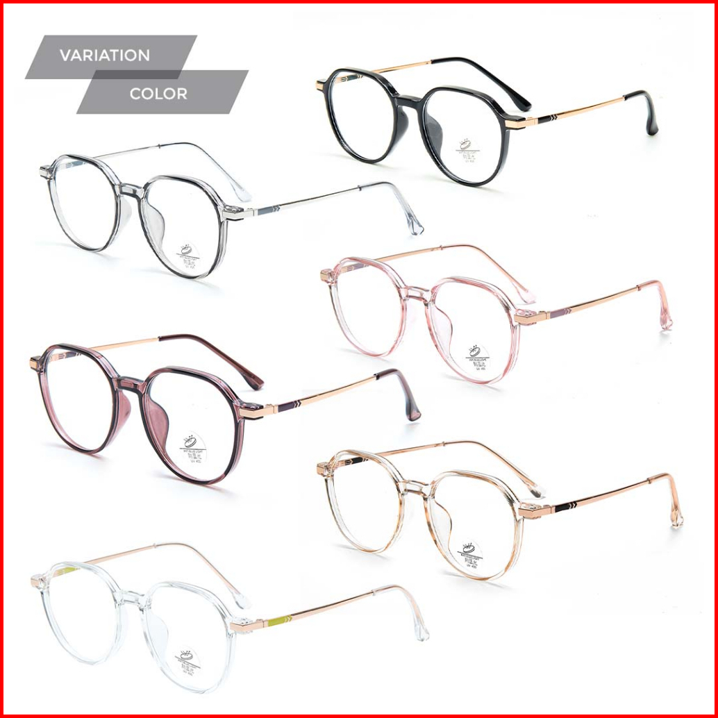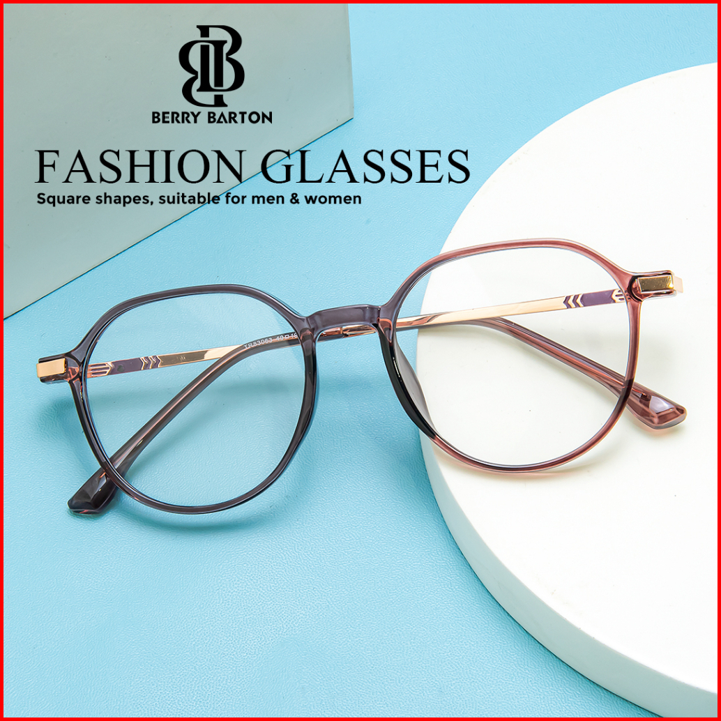 Berrybarton Kacamata Segi Enam Lensa Anti Radiasi Photocromic Blueray Kacamata Metal Tr Minus Pria Wanita 83063