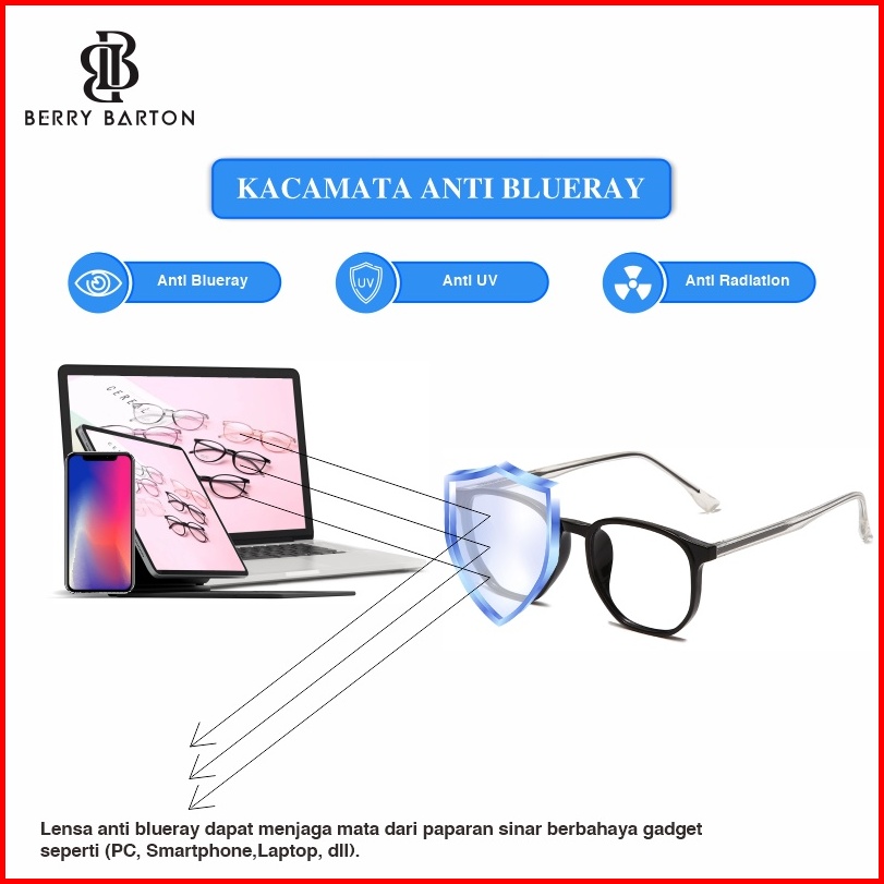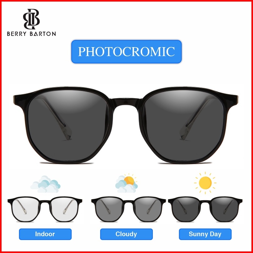 Berrybarton - Kacamata Bulat Elastis Anti Radiasi Photocromic Blueray Kacamata Minus Pria Wanita 272