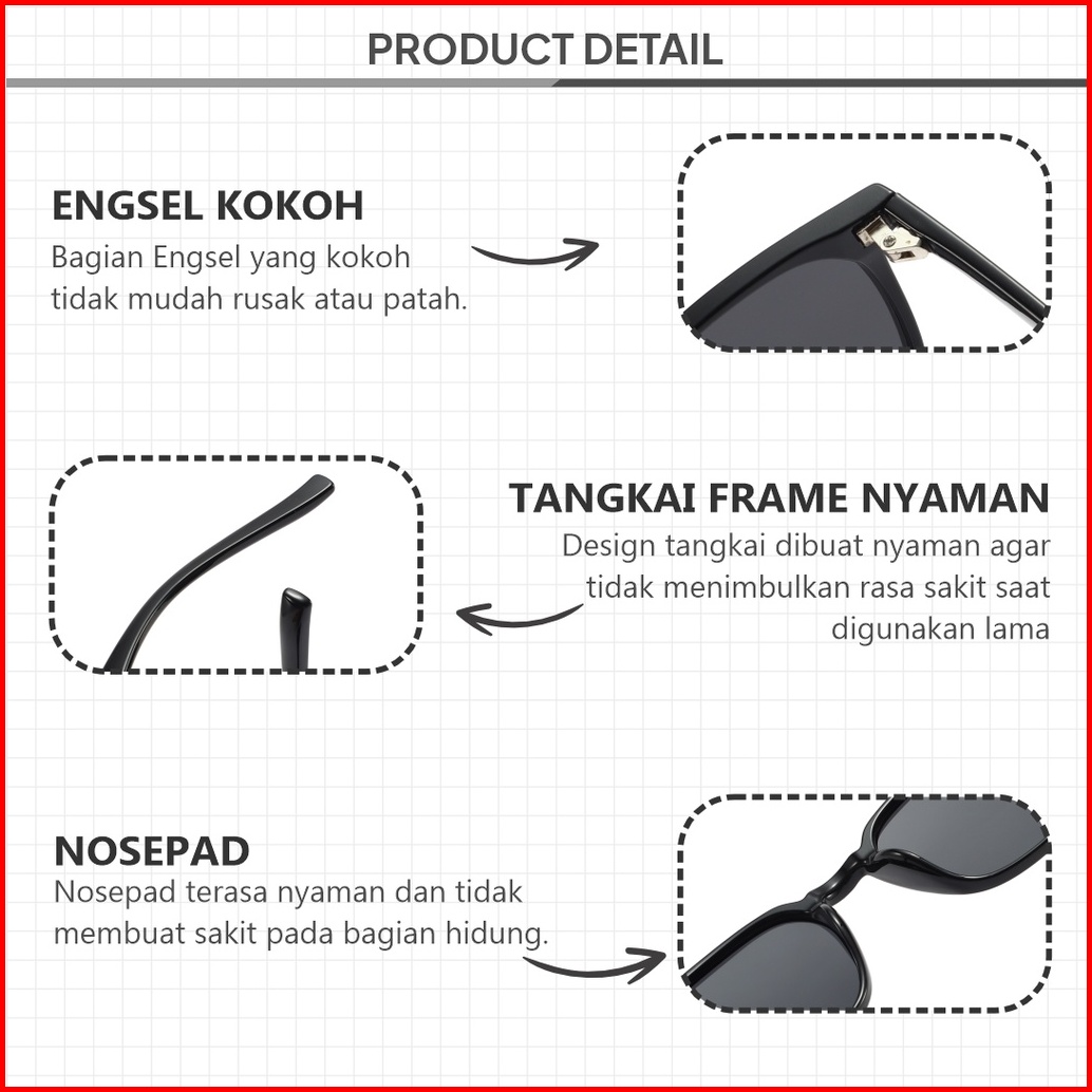 Berrybarton - Kacamata Hitam Segi Empat Plastik Tr Sunglasses Anti Uv Pria Wanita 225278