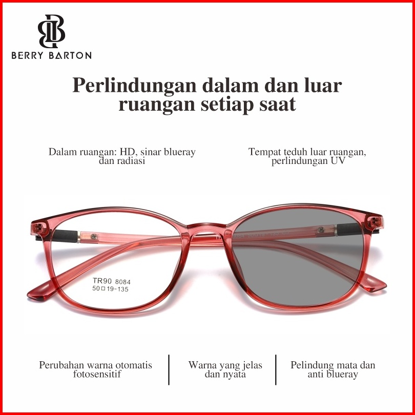 Berrybarton - Kacamata Segi Empat Tr Anti Radiasi Photocromic Blueray Pria Wanita 8084