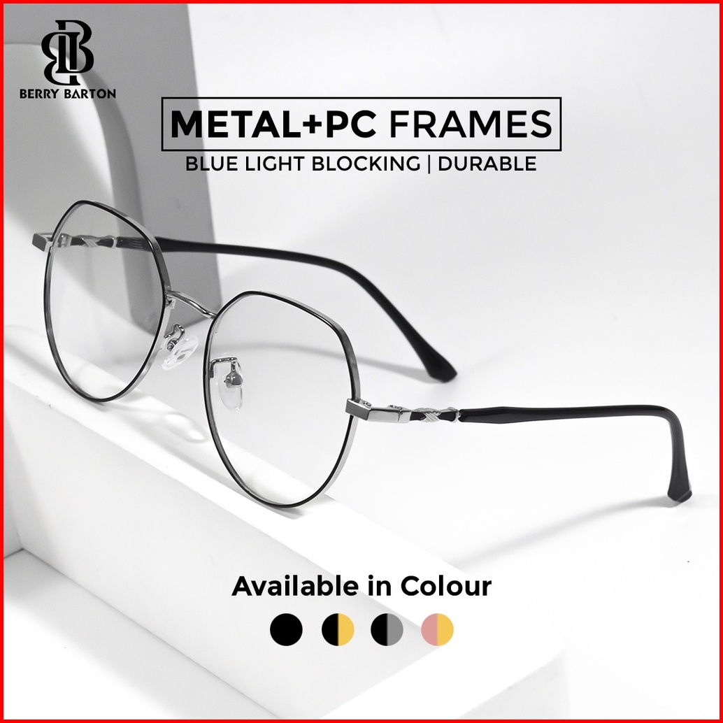 Berrybarton Kacamata Bulat Retro Metal Lensa Anti Radiasi Blueray Photocromic Pria Wanita 72672