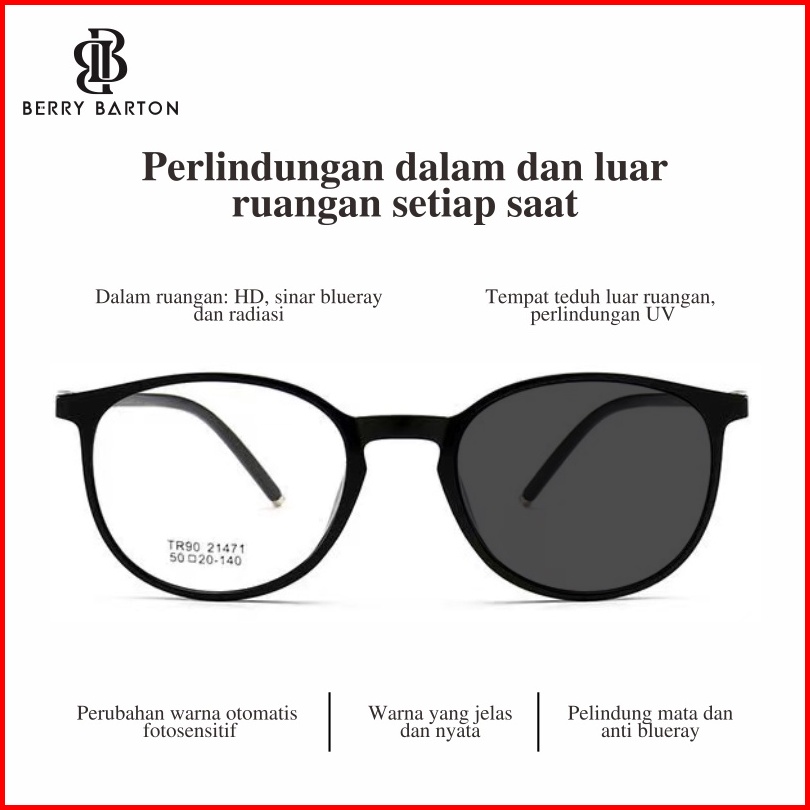 Berrybarton - Kacamata Bulat Korea Modern Bisa Minus Photocromic Blueray 21471