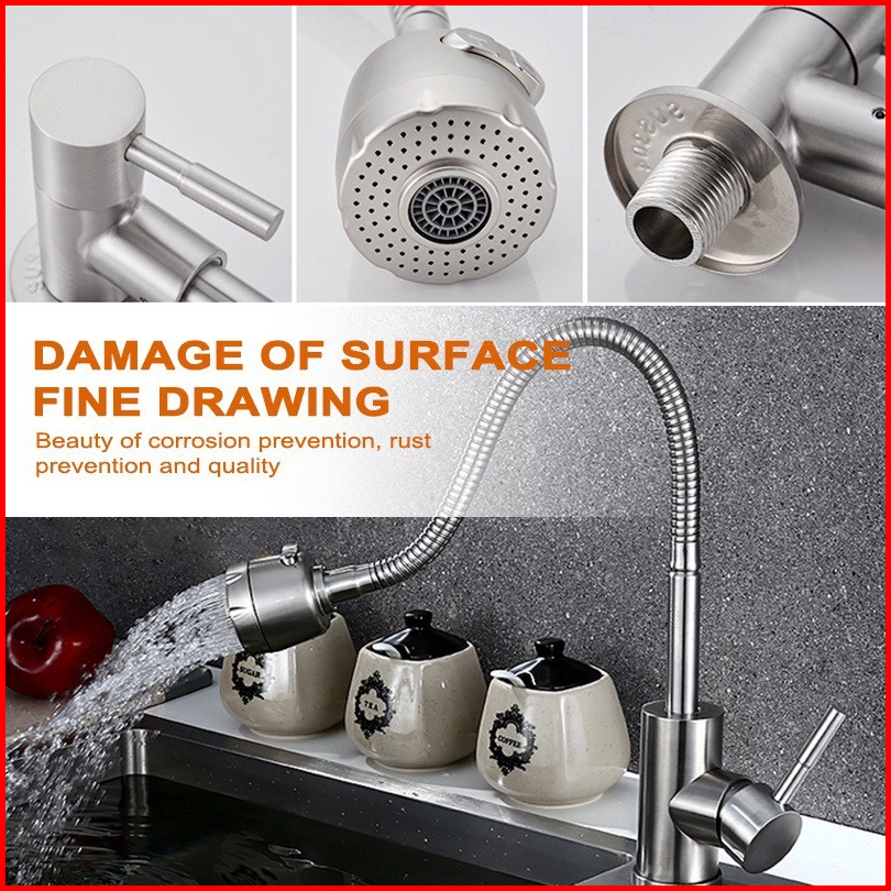 304 Kran Angsa Fleksibel Stainless Kran Sink Fleksibel Keran Bak Cuci Piring Dapat Diputar 360