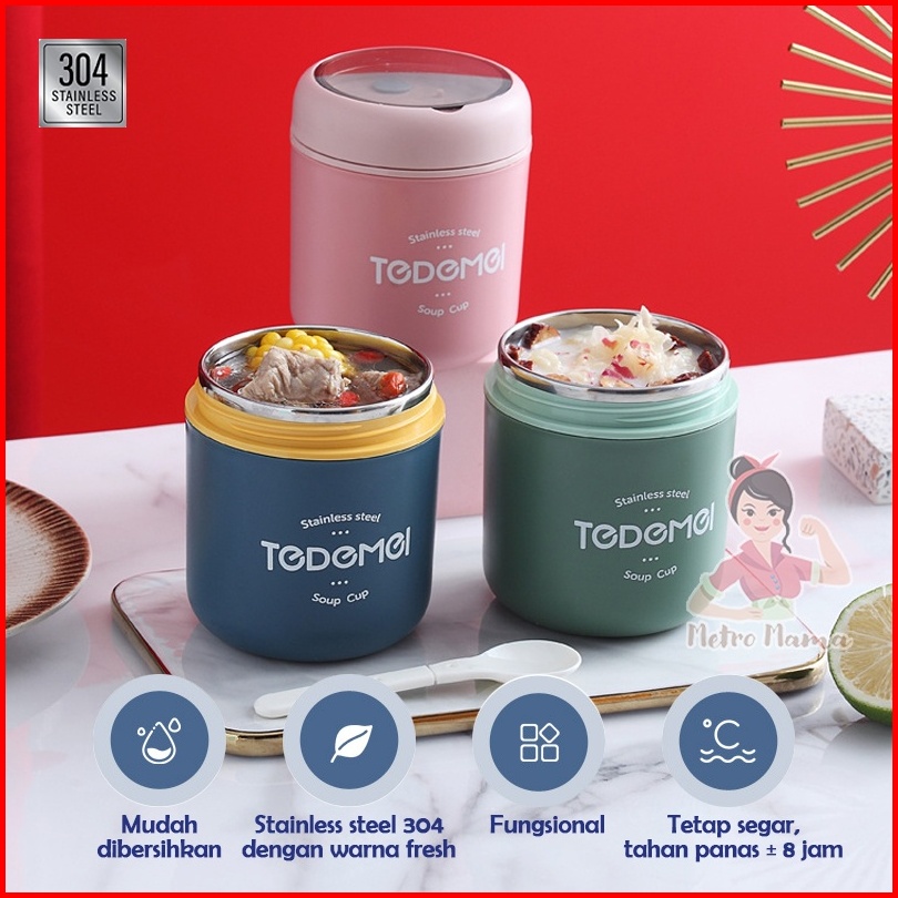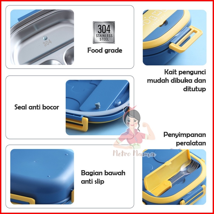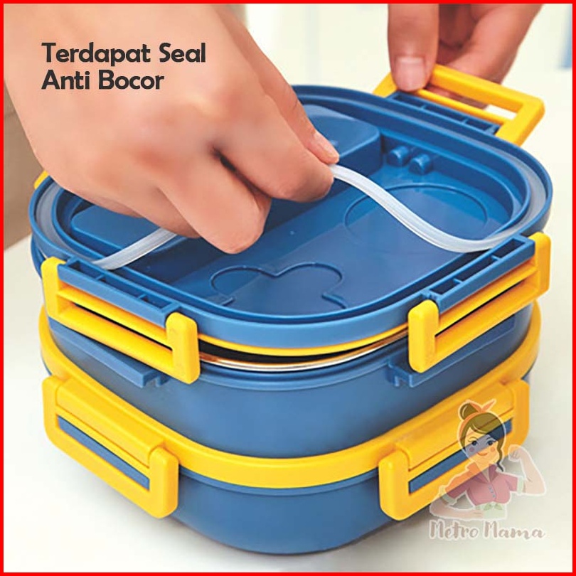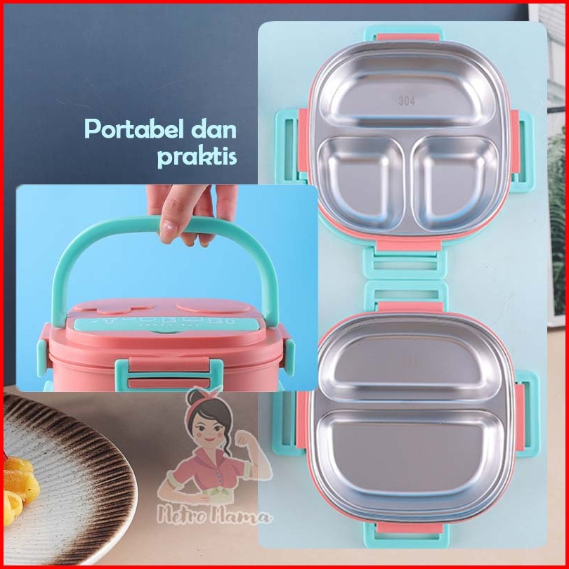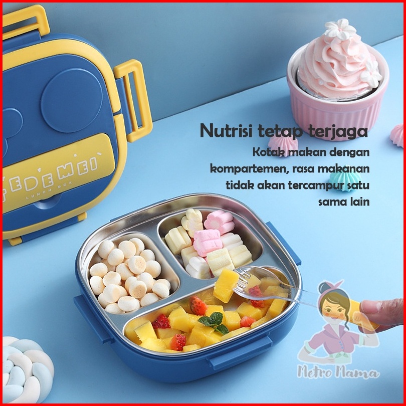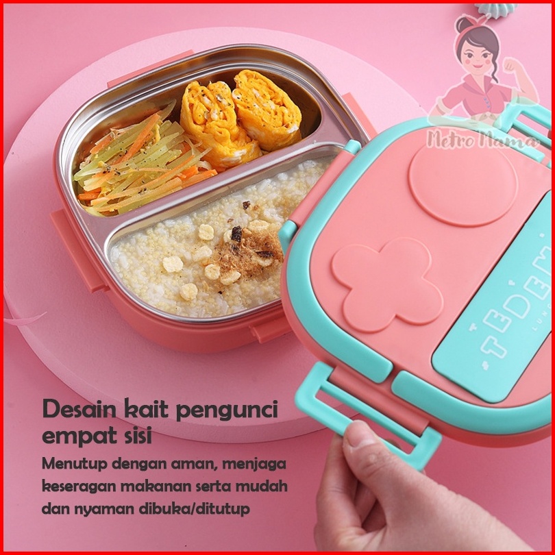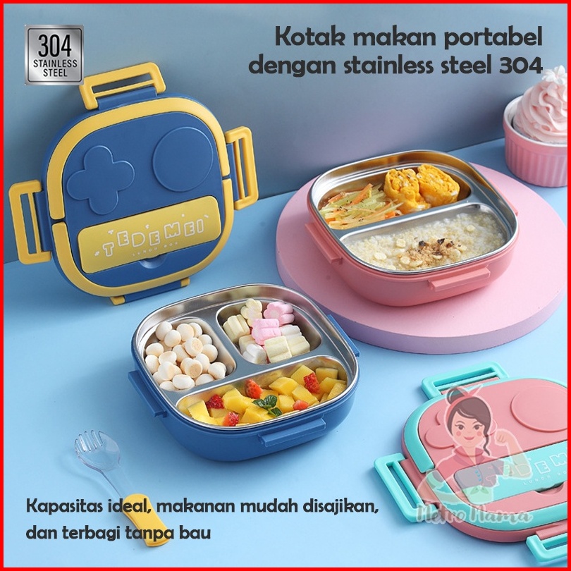 Kotak Makan Anak Sekolah Lunch Box Set Stainless Steel 304 Tedemei Original Ada Kotak
