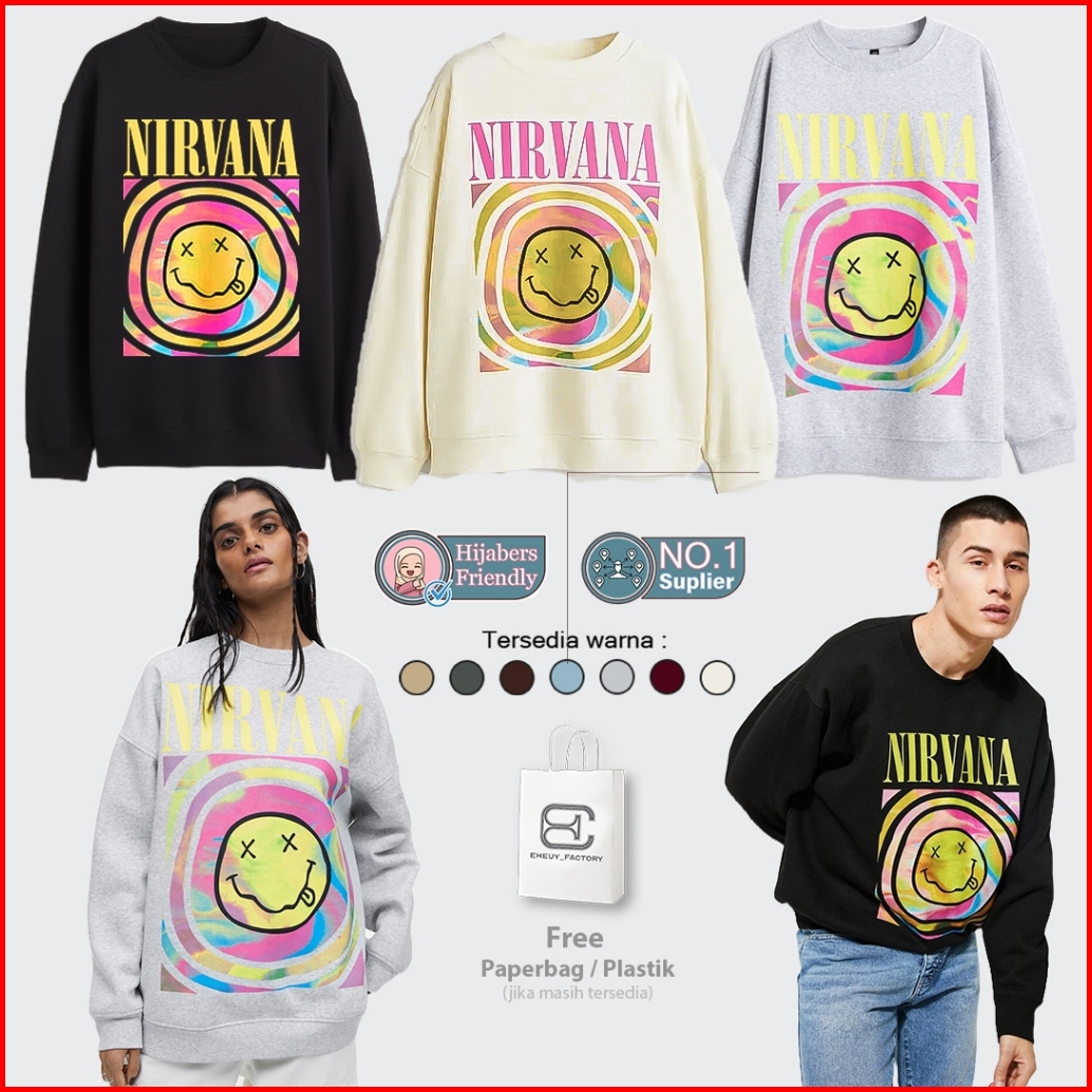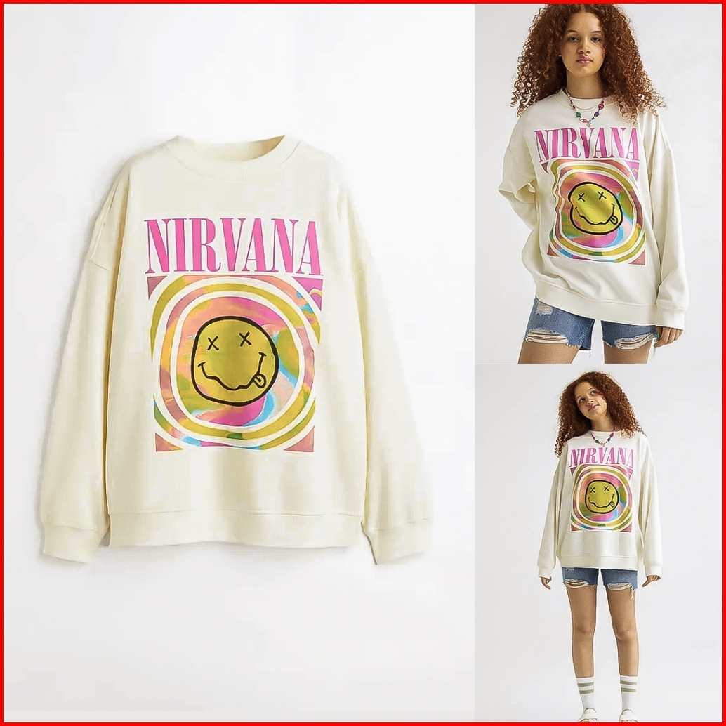 Crewneck Nirvana Vertigo Broken White Soft Cream Sweater Nirvana Rainbow
