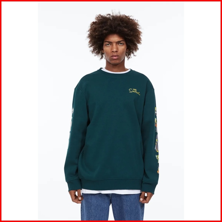 Crewneck Simpsons Hijau Botol Sweater Wanita Pria Motif Simpsons Family