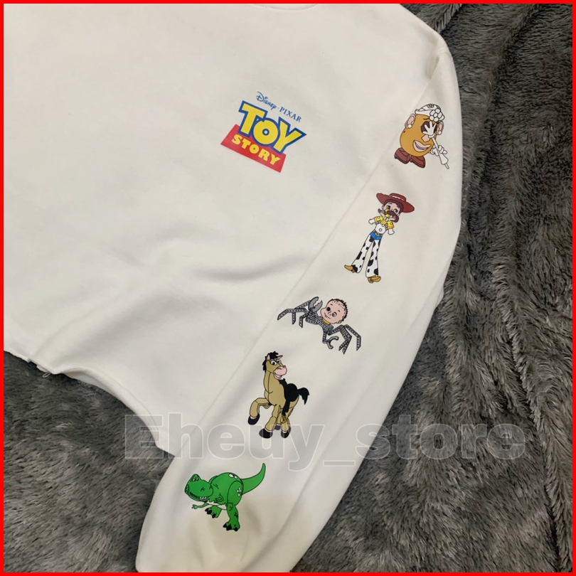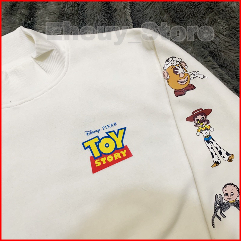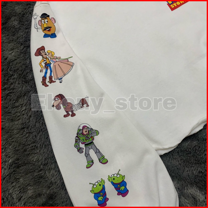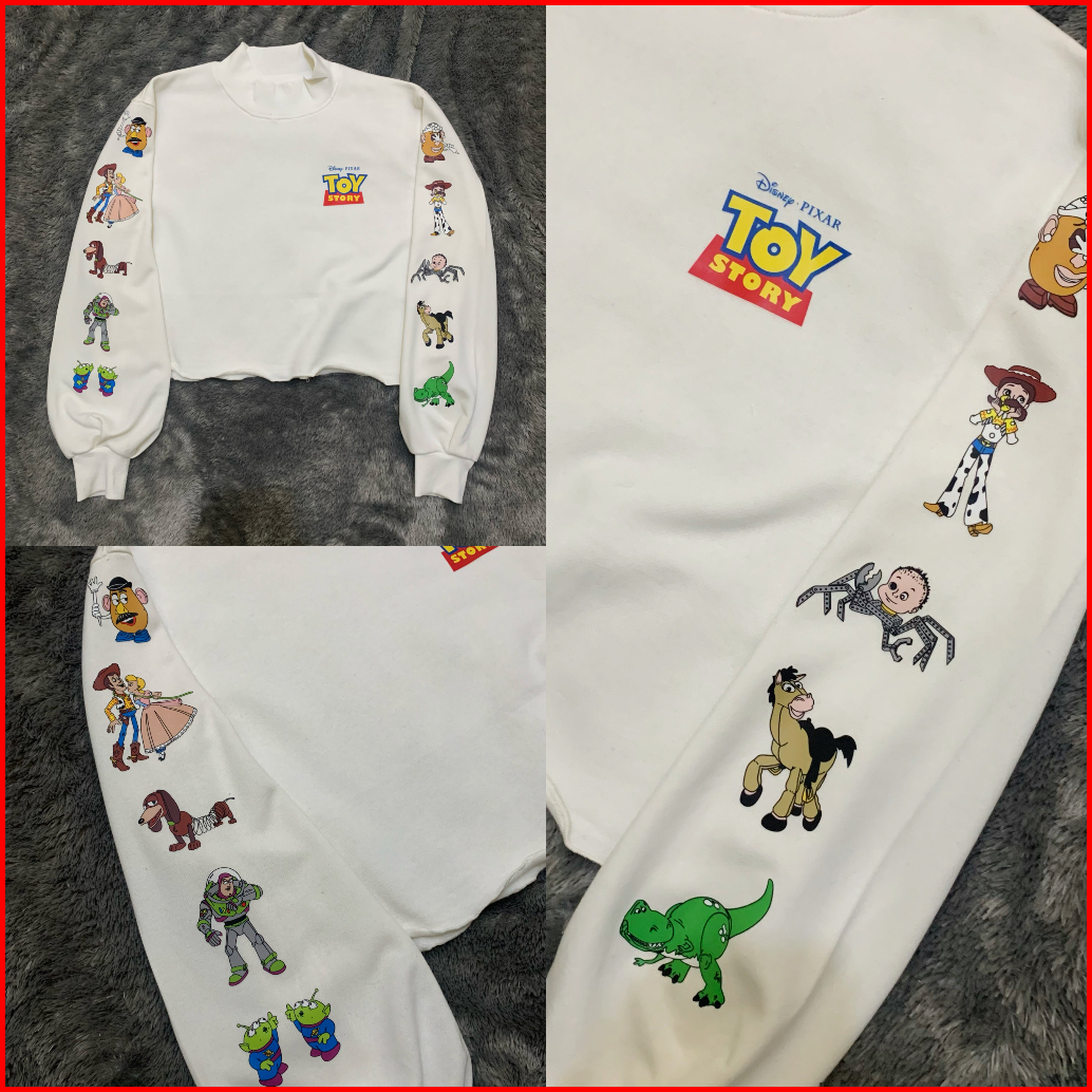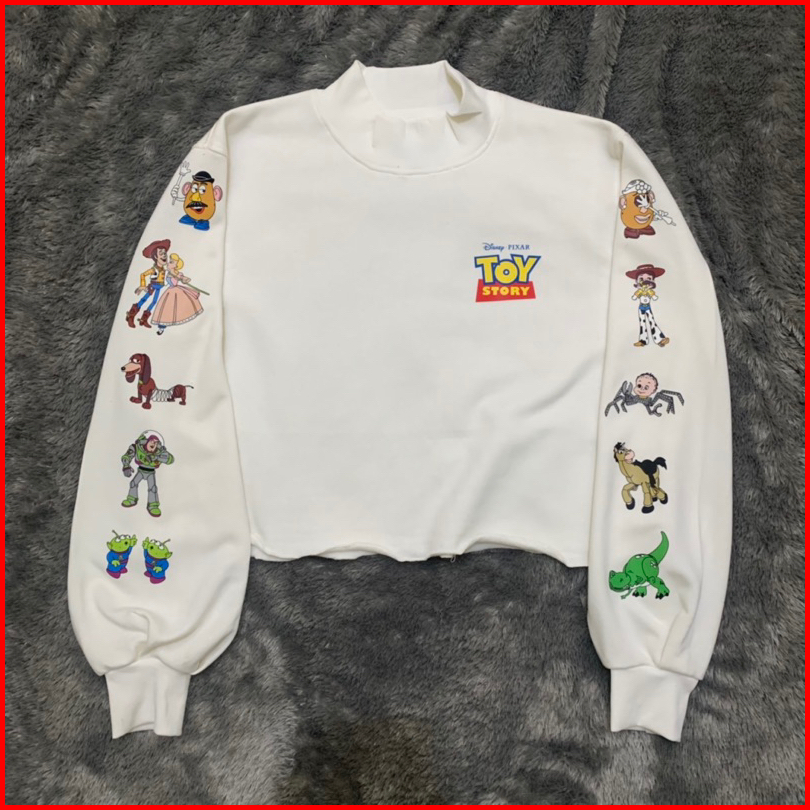 Crop Sweater Toy Story Original White Lengan Balon Rempel Crewneck Crop Wanita Soft Cream