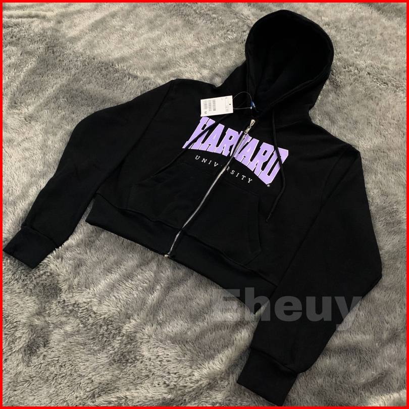 Zipper Crop Hitam Original Jaket Cropped Women Sweater Wanita Crop Zip Basic