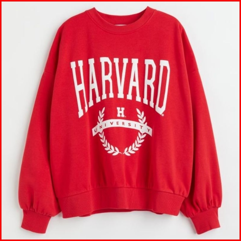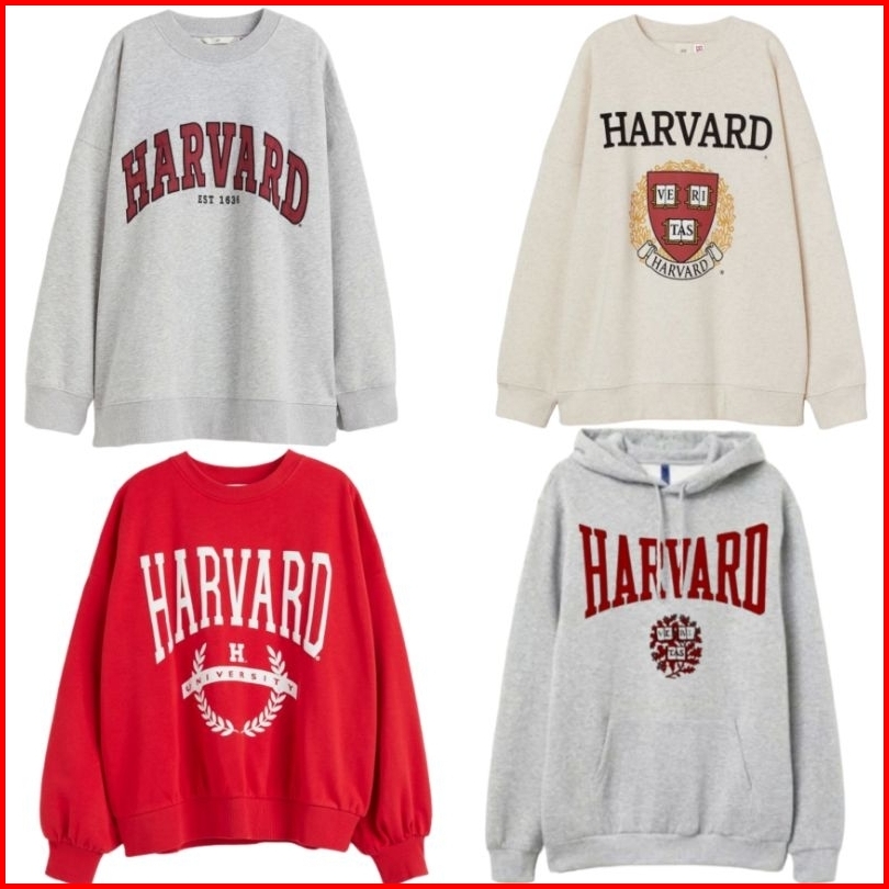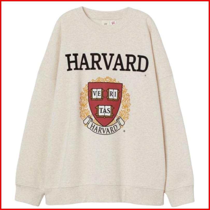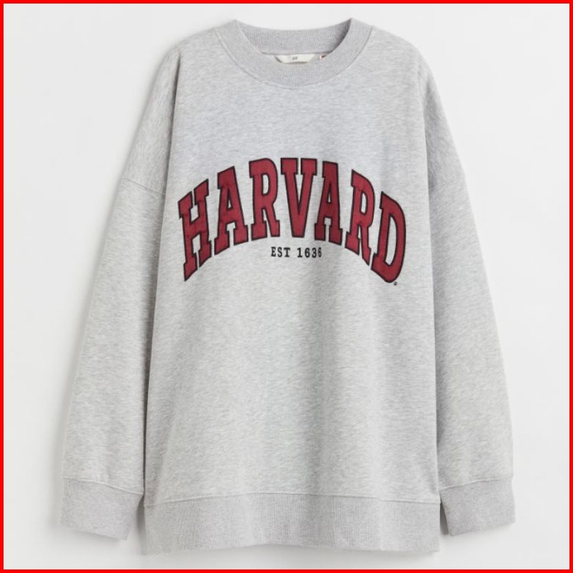 Hoodie H M Katun Wanita Pria Hnm Harvard Light Grey Printed Sweater Crewneck Unisex