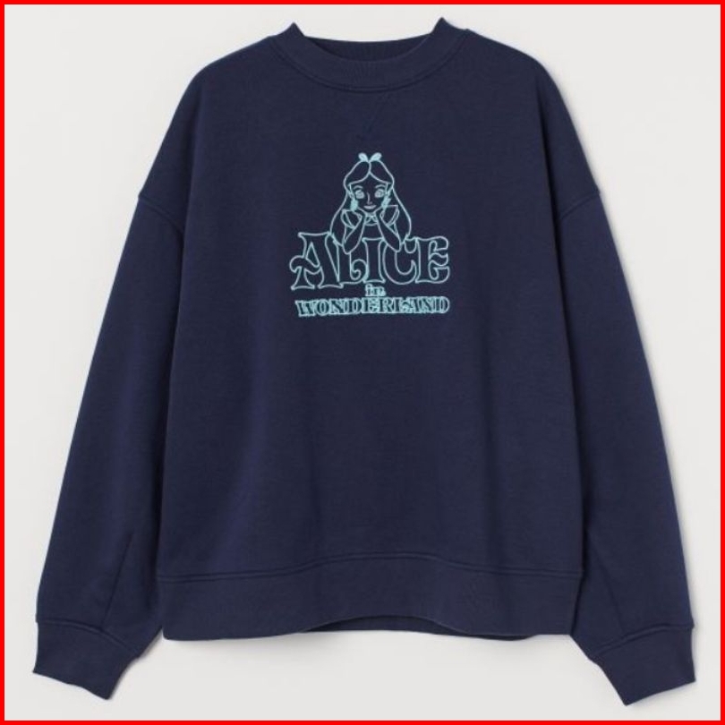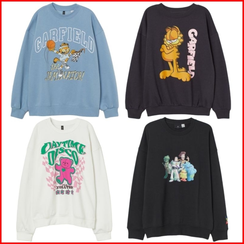 Crewneck Sweater Katun Wanita Alice In Wonderland Lilo Stitch Bordir Garfield