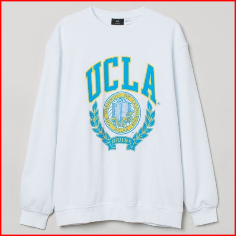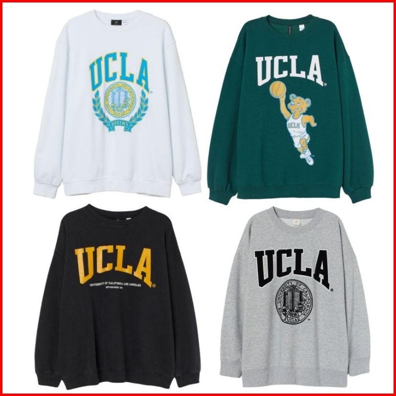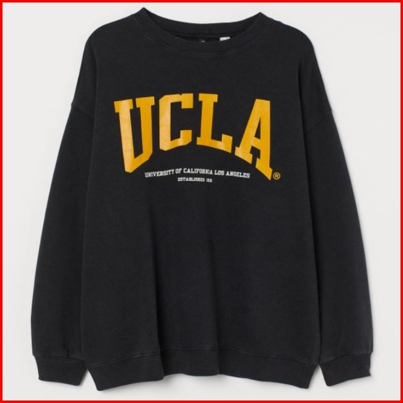 Crewneck H M Katun Pria Wanita Hnm Ucla Black Grey Printed Sweater Unisex