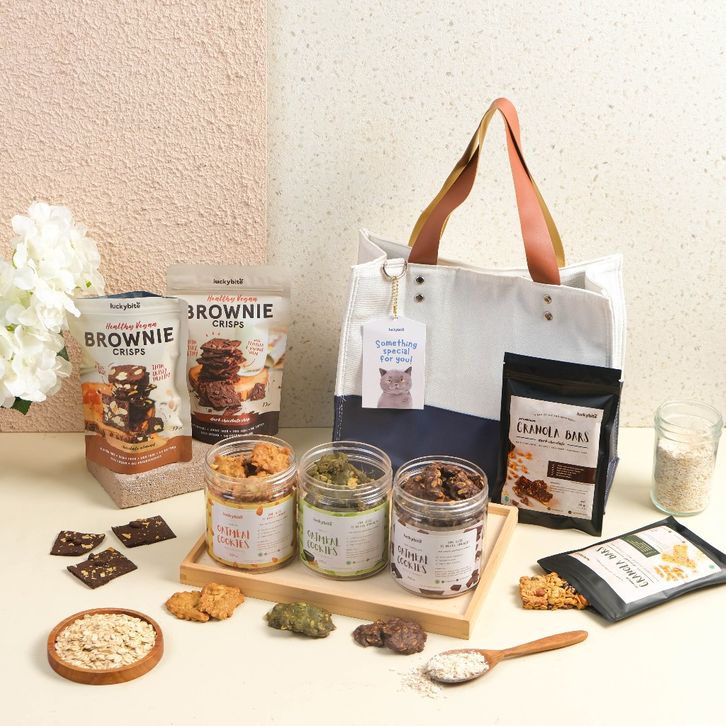 Hampers / Parcel / Kado - PREMIUM CANVAS BAG / TAS CANVAS - Oatmeal Cookies + Brownie Crisps + Granola BEST SELLER