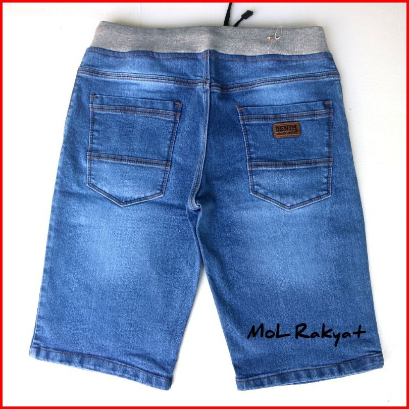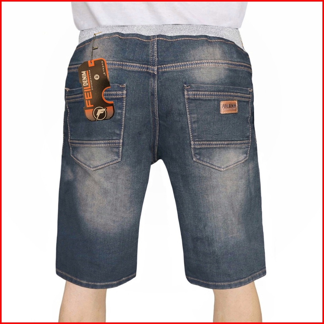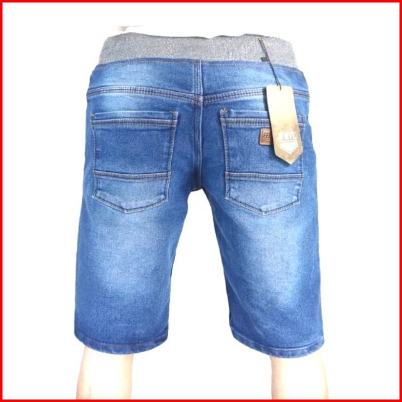 Celana Pendek Pria Jeans Kolor Rip Pinggang Karet
