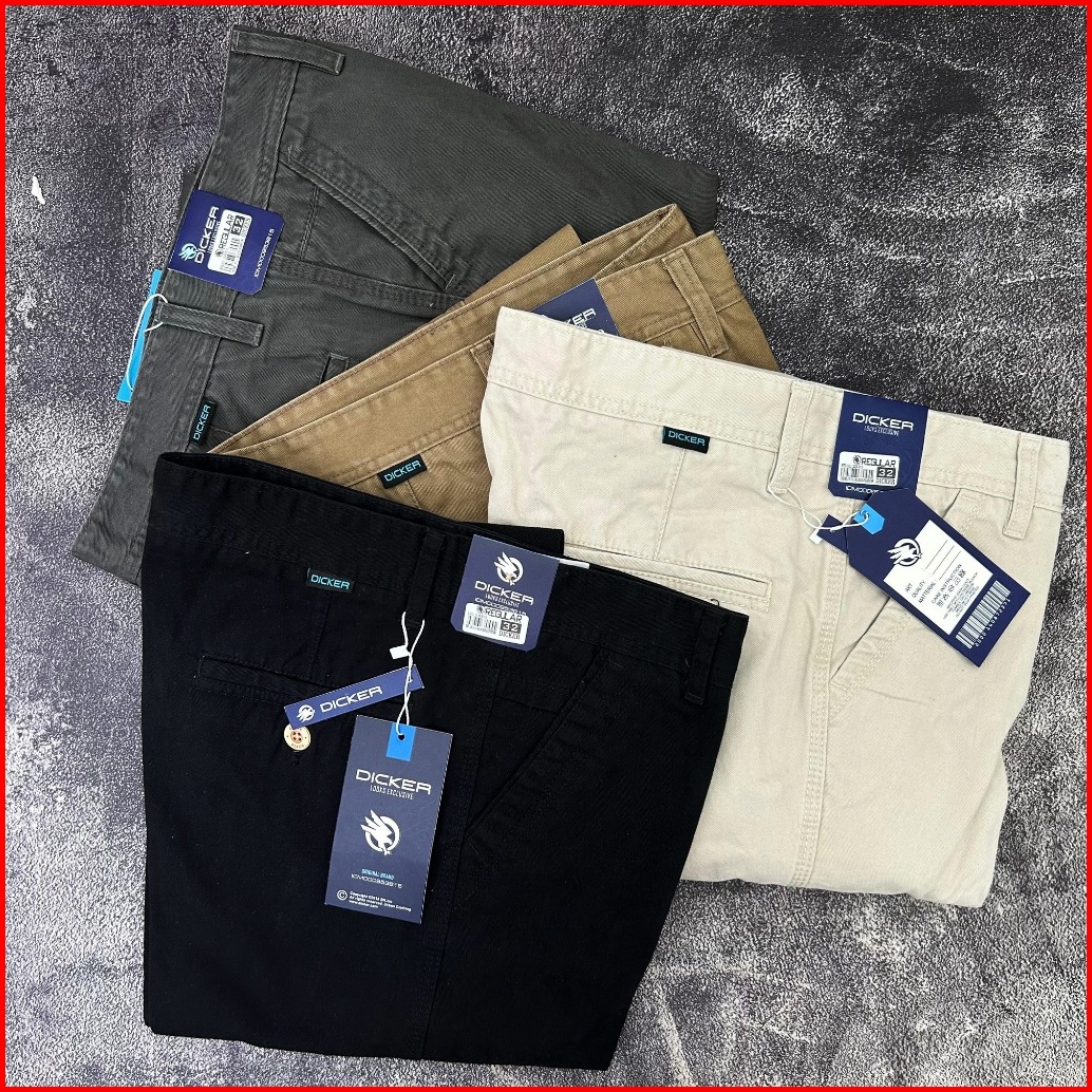 Dicker Celana Panjang Kanvas Lembut Original Terbaru Tidak Melar Hitam Abu Cream Moka