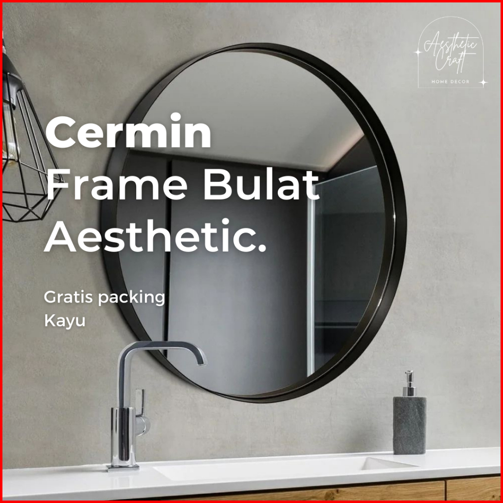 Cermin Bulat Frame Aesthetic Hitam Putih Dekorasi Dinding Aesthetic Free Packing Kayu