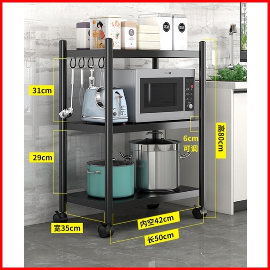 3tingkat 50x35x80cm Rak Dapur Rak Microwave Oven Penyimpanan Rak Penyimpanan Rak Rumah Tangga Zwj