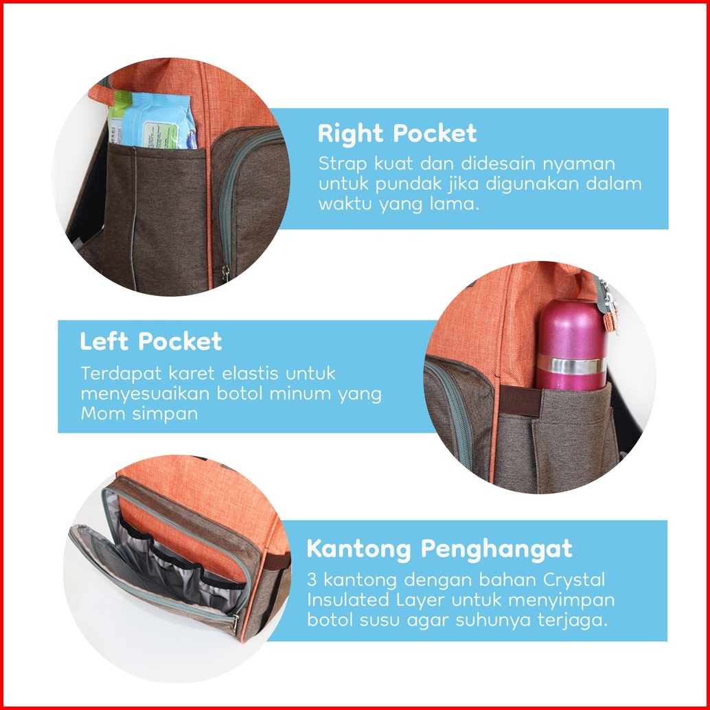 Tas Bayi Multifungsi Diaper Bag Natural Moms Saranghaeyo 14 Pockets
