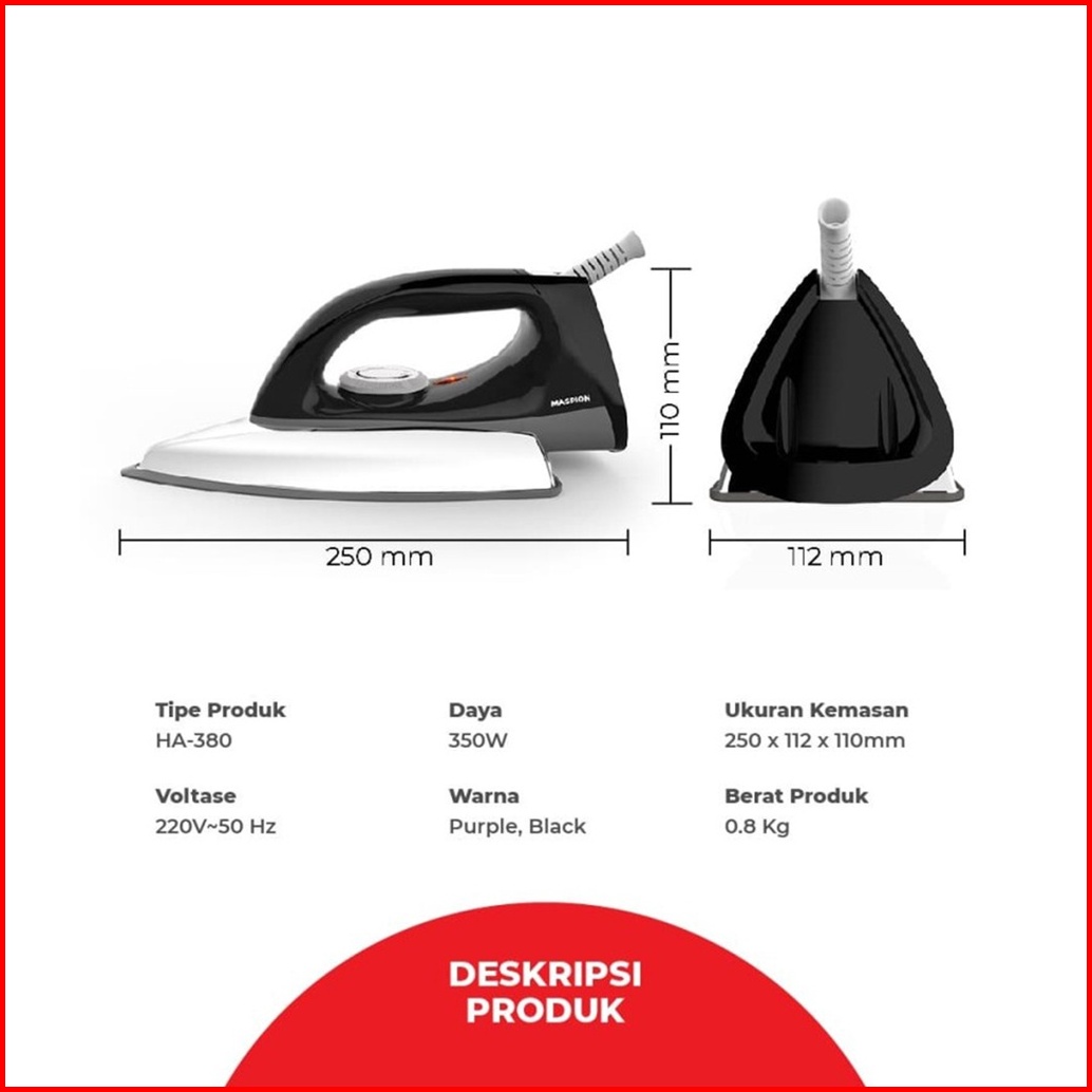 Setrika Listrik Maspion Ha-380 Dengan Ceramic Coating Gosokan Baju