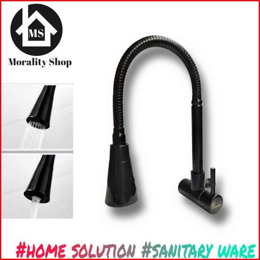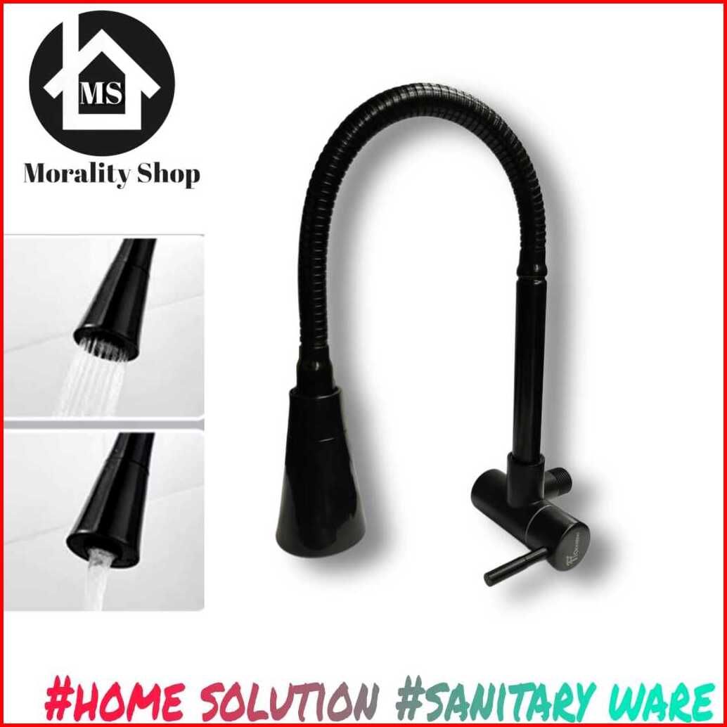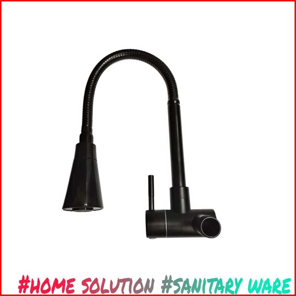 Kran Sink Angsa Dapur Cuci Piring Stainless Fleksibel Hitam Kepala Terompet 04bbla