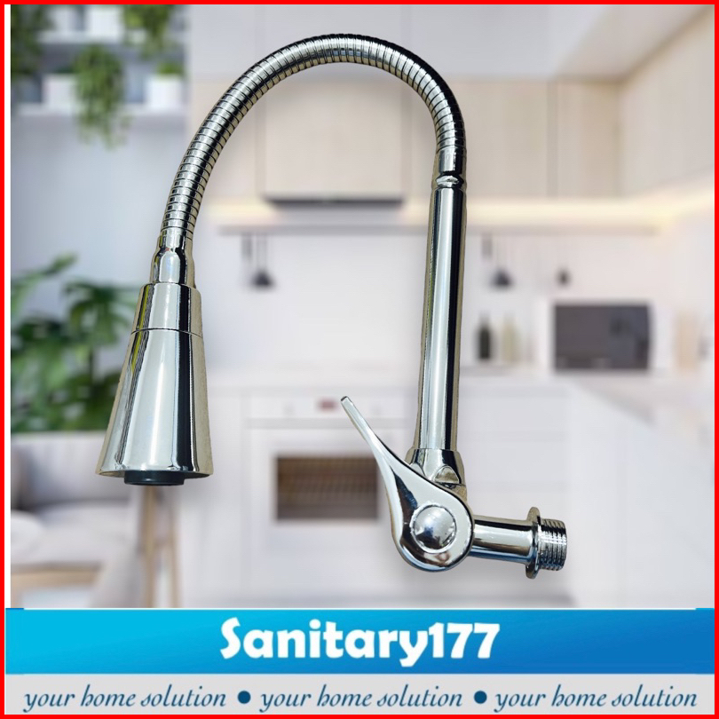 Kran Angsa Fleksibel Minimalis 2in1 Hitam Terompet Ks58- Keran Sink Wastafel Washtafel Dapur Cuci Piring Sink 2in1 Minim