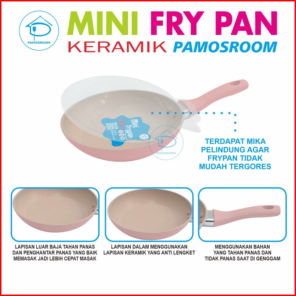 Pamosroom New Frypan Mini 14cm Wok Pan Teflon Marble Coating Anti Lengket Frypan Mini Lucu 14 Cm