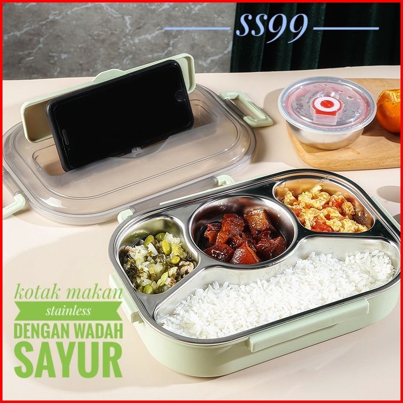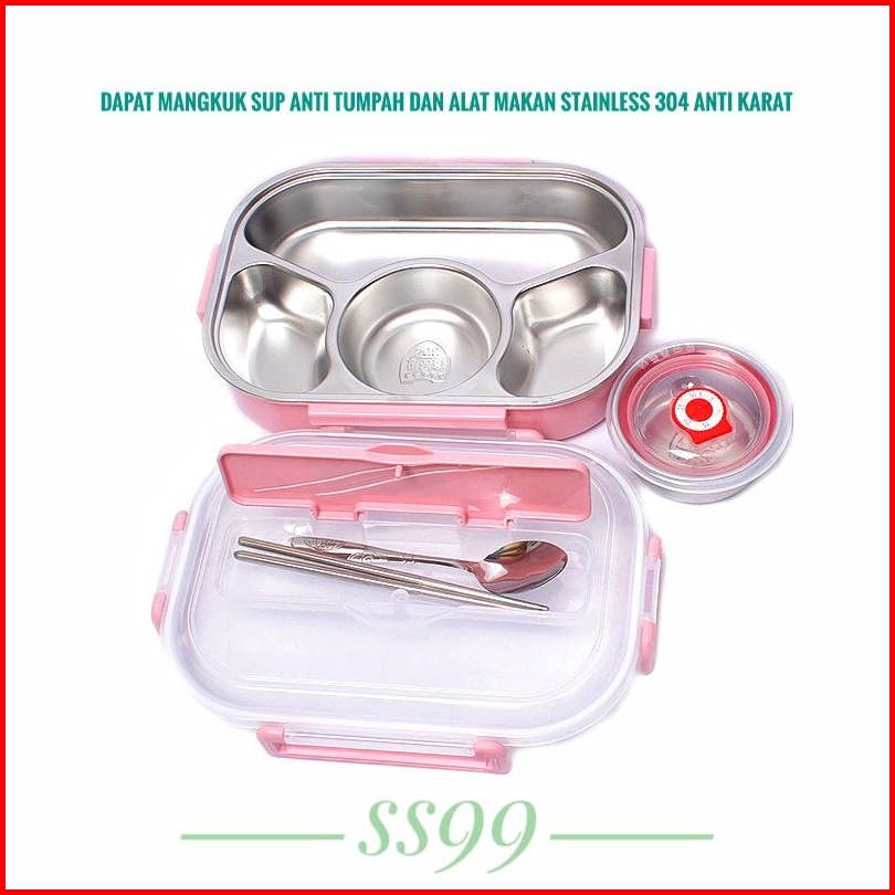 Kotak Tempat Makan Bekal Anak Dewasa Alat Makan Dan Mangkuk Sup Anti Tumpah Stainless Steel 304 Bento Lunch Box