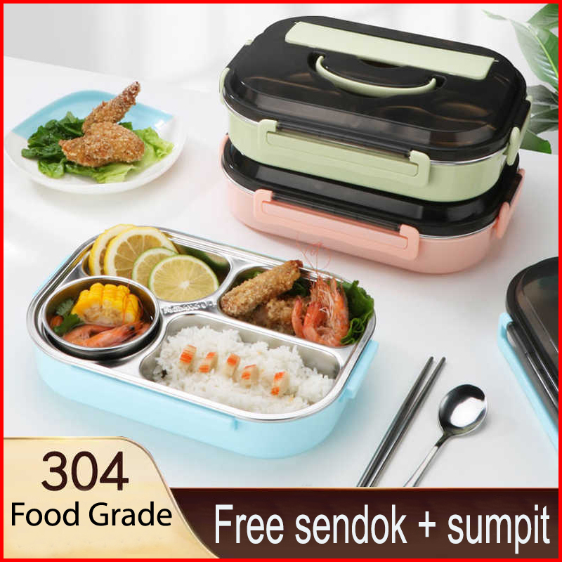 Lunch Box Kotak Makan 4 Sekat Stainless Lunch Box Stainless Tahan Panas Dan Anti Tumpah