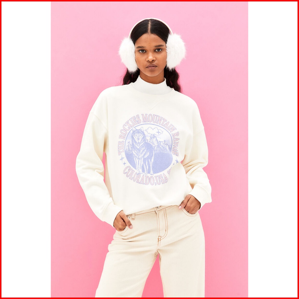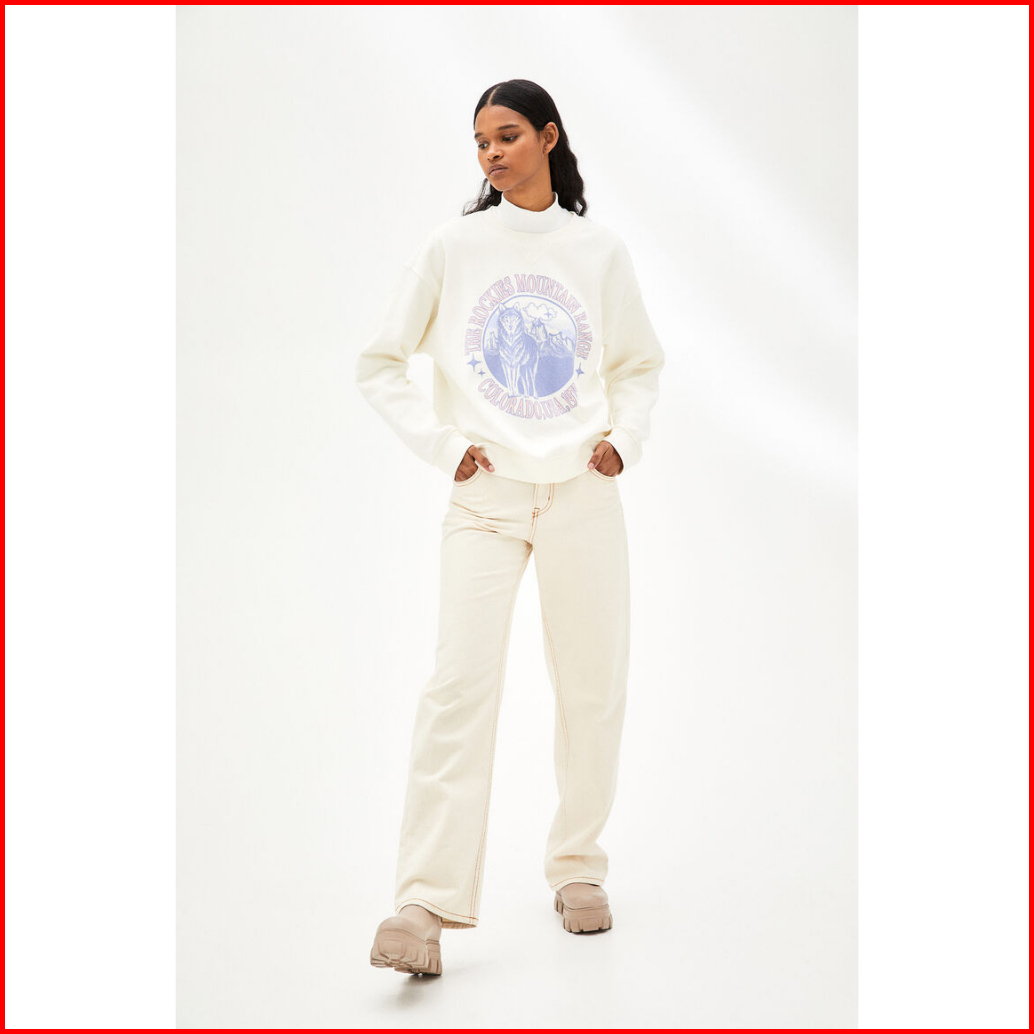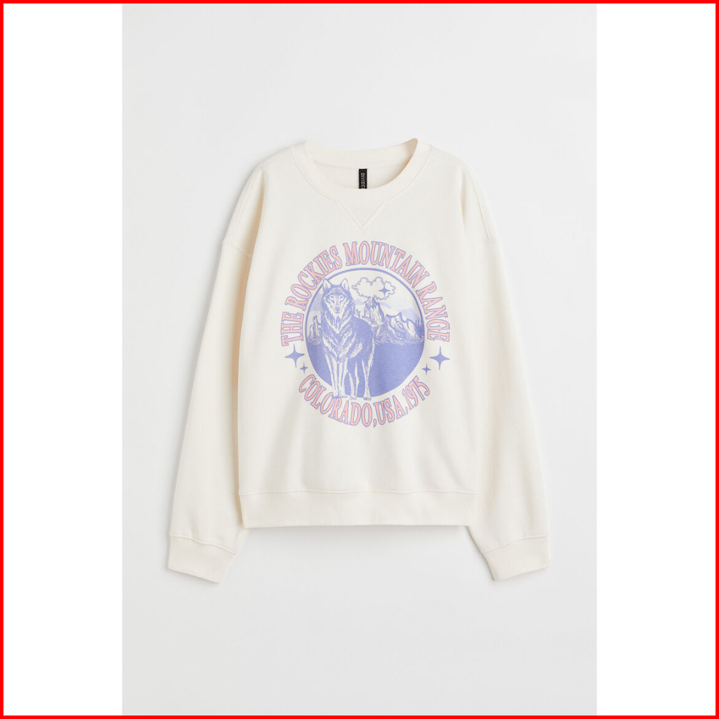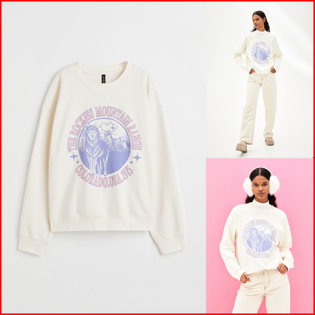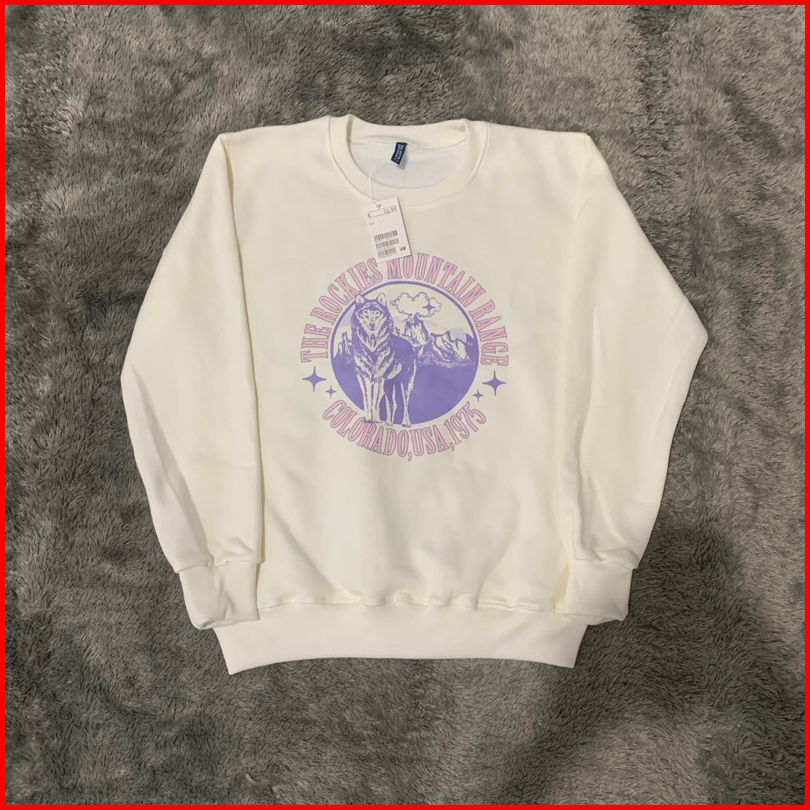 Crewneck The Rockies Mountain Range Wolf Broken White Sweater Cream