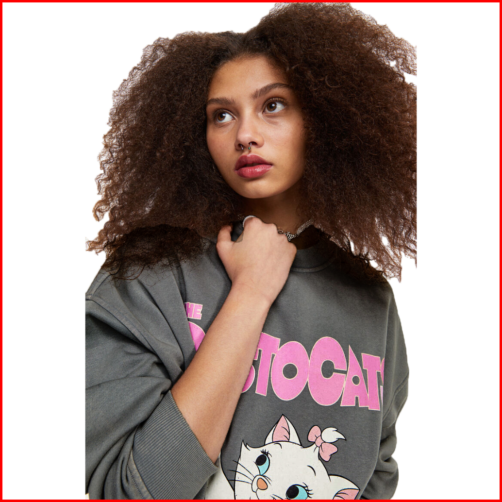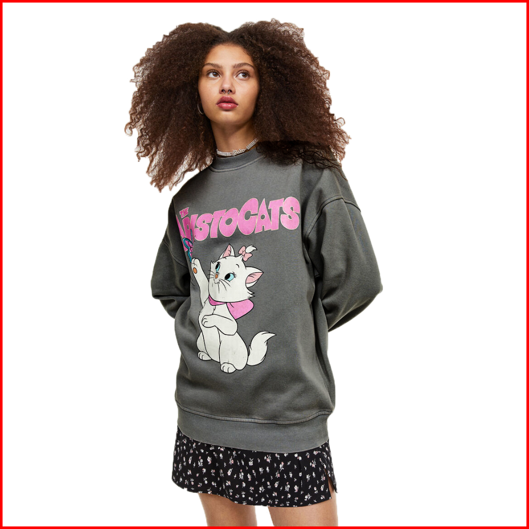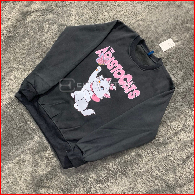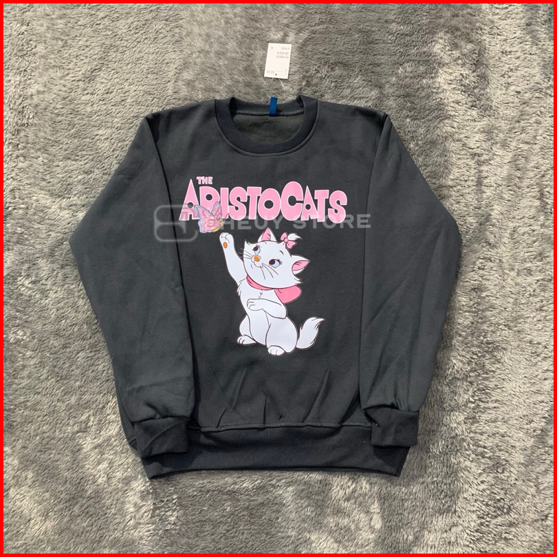 Crewneck Aristocat Black Reguler Size Sweater Wanita Original Dark Grey
