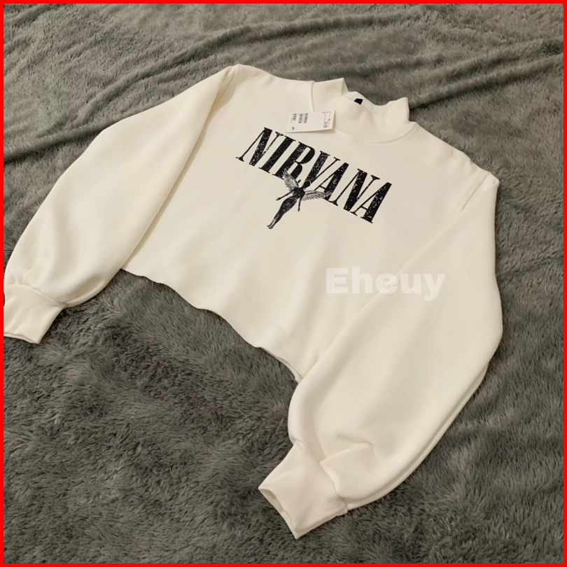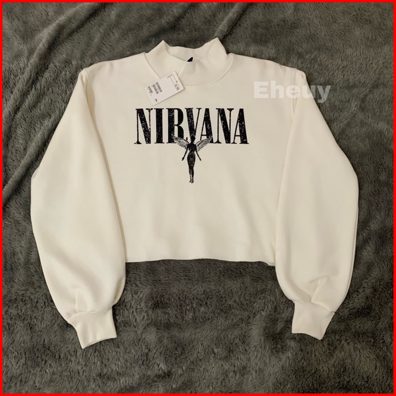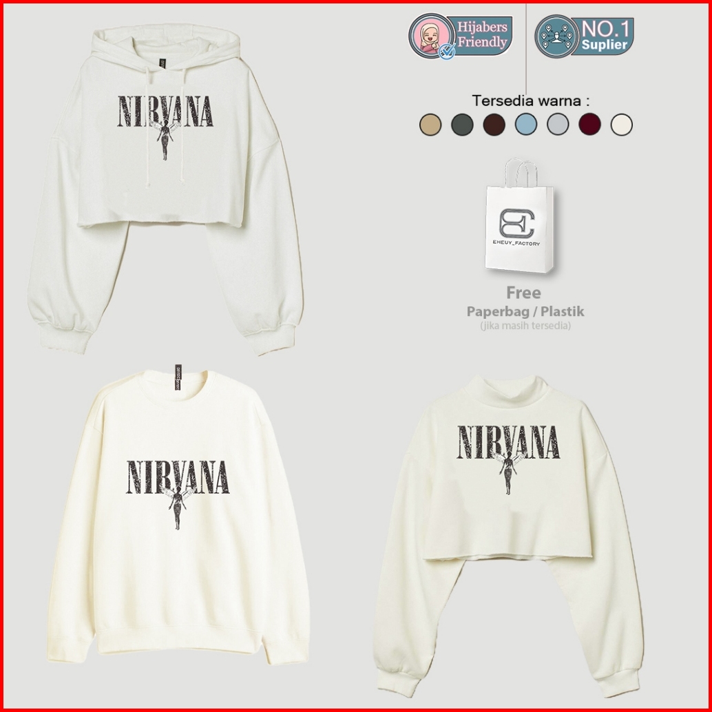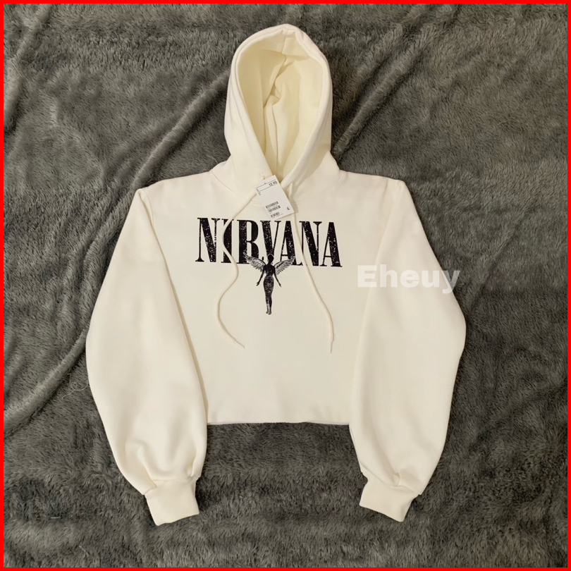 Crop Sweater Nirvana Broken White Hoodie Crop Wanita Soft Cream