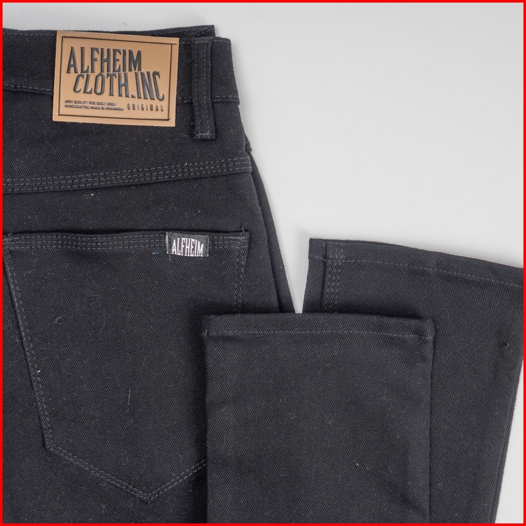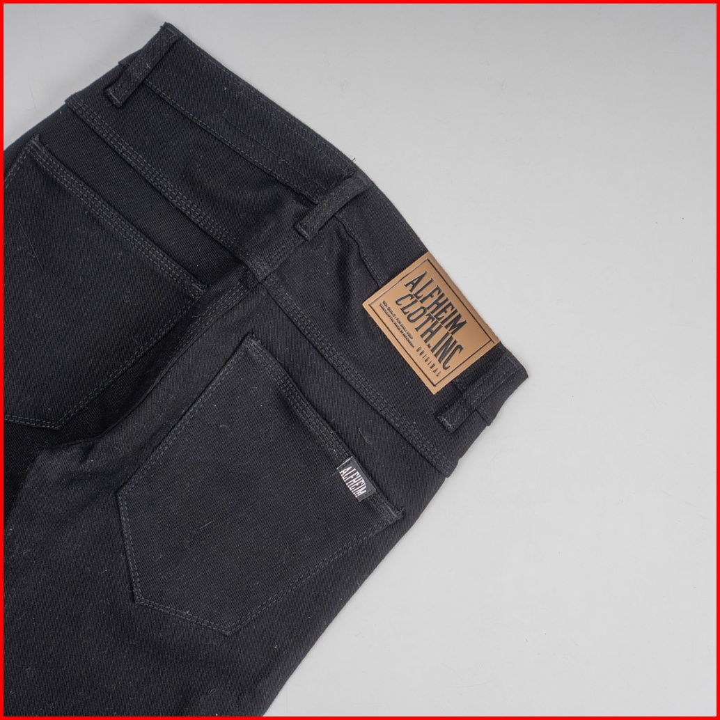 Alfheimcloth.inc - Celana Jeans Naomi Long Pants Denim - Slim Fit Men Black Stretch Pria 14 Oz