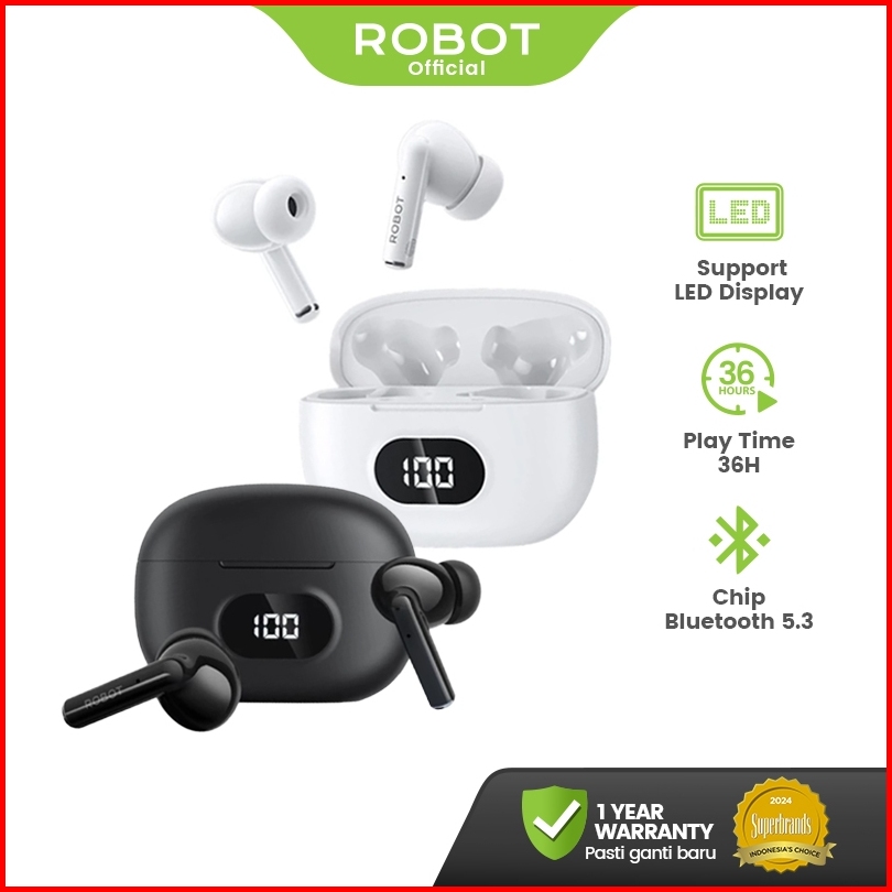 Robot True Wireless Earbuds Deep Bass Tws Bluetooth 5.3 Smart Control Hd Call Earphone Airbuds T70 Original - Garansi 1