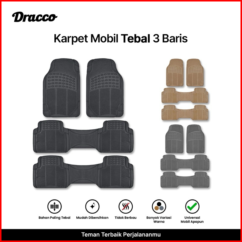Karpet Mobil 3 Baris Dracco Tebal Universal Anti Slip Mudah Dibersihkan Tidak Berbau Awet