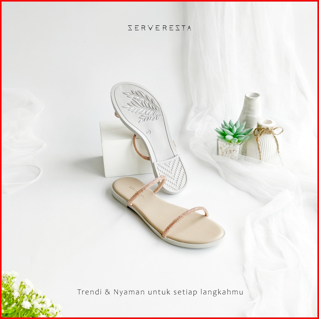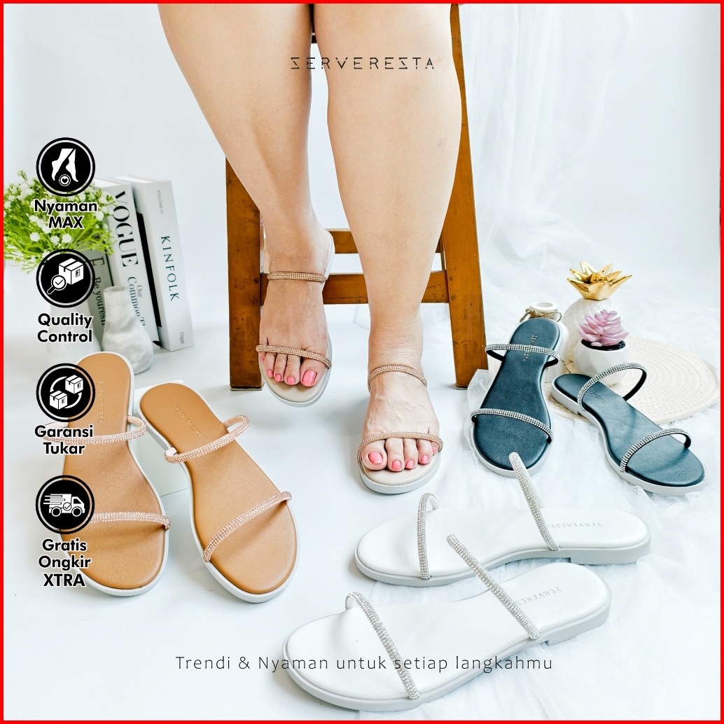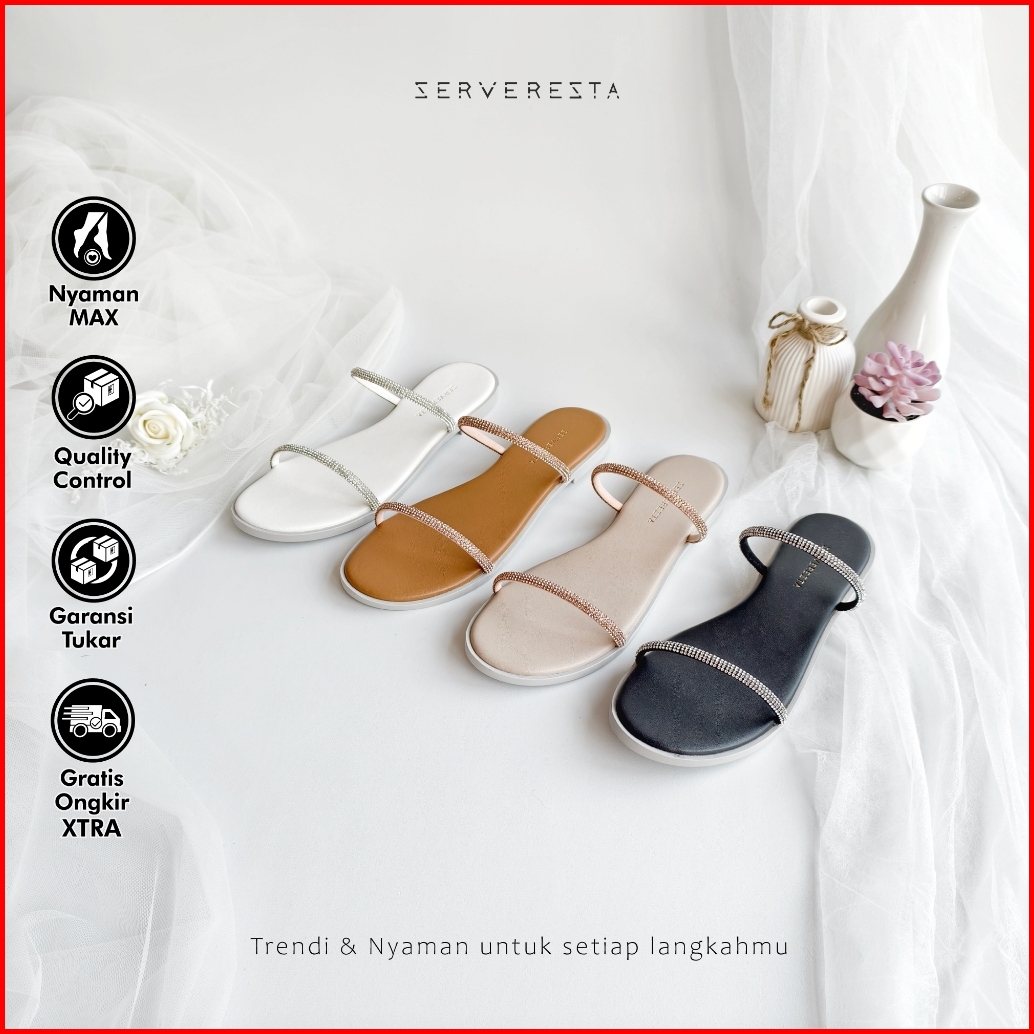 Serveresta Dahlia Sandal Flat Wanita Elegan Kekinian - Tali Bling Kristal