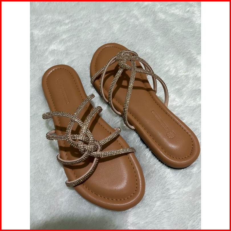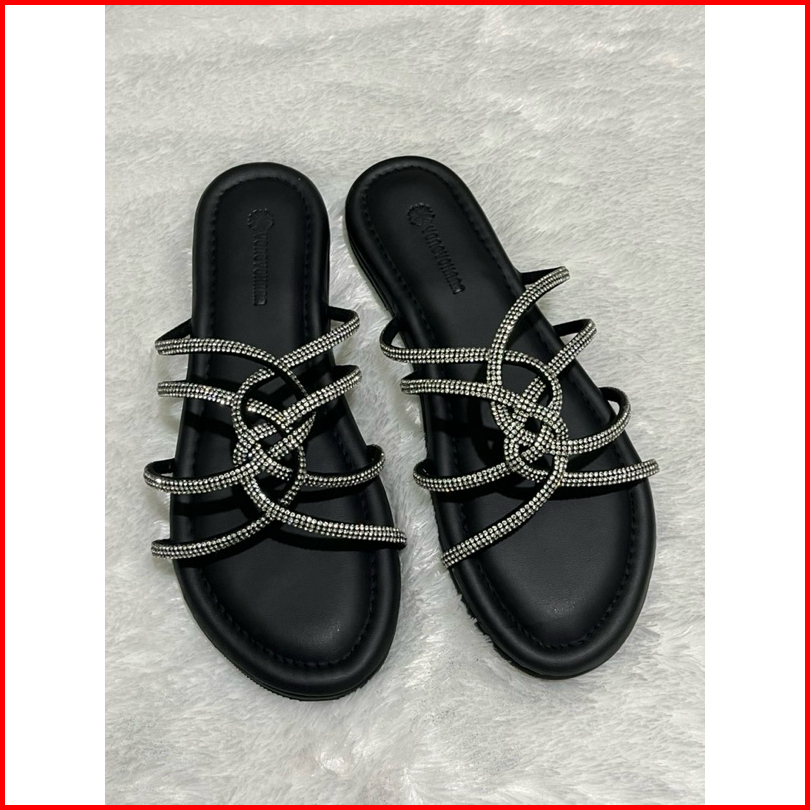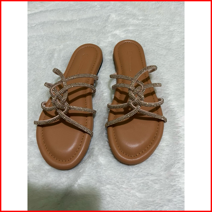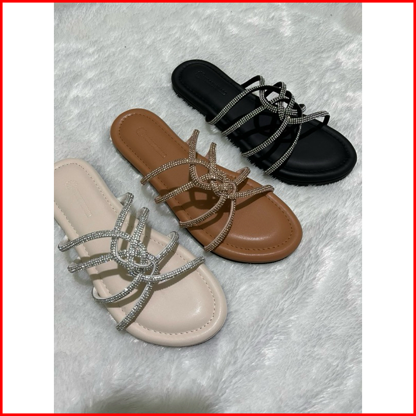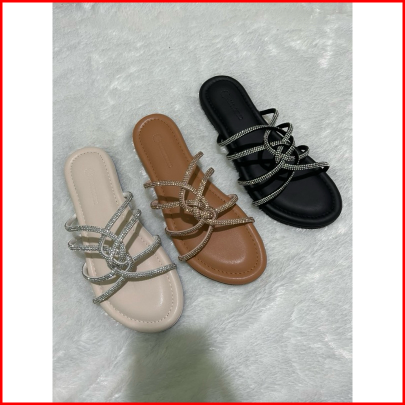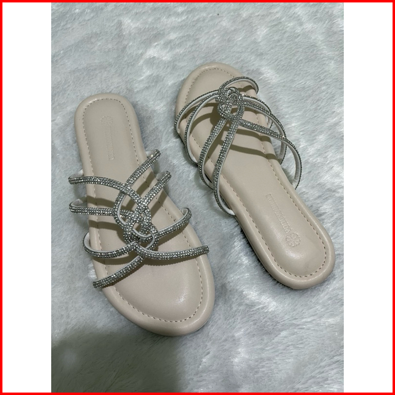 Yongyohana -reinee Slippers Sandal Flat Wanita Tali Glitter Blings Sendal Teplek Wanita Korean Style