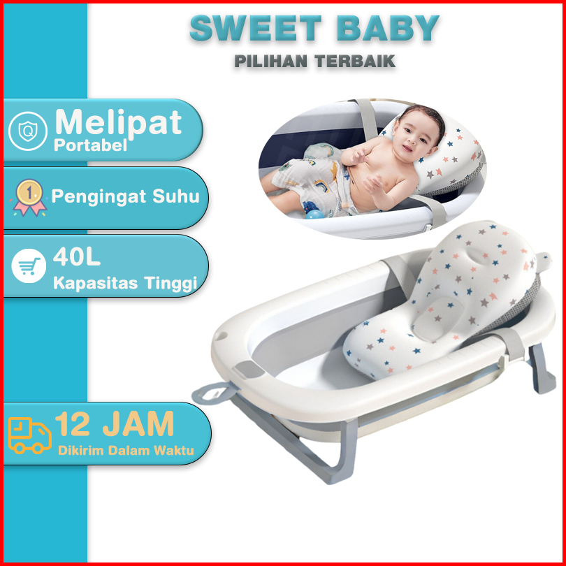 Sweetbaby Foldable Baby Bath Tub Dengan Bantal Mandi Bak Mandi Bayi Portable Tub02