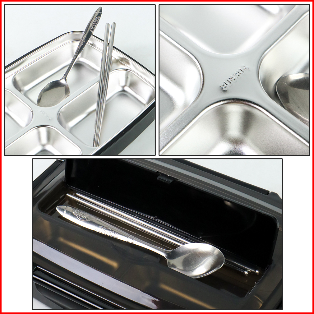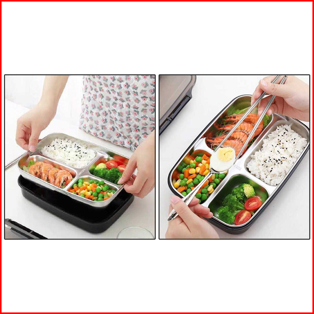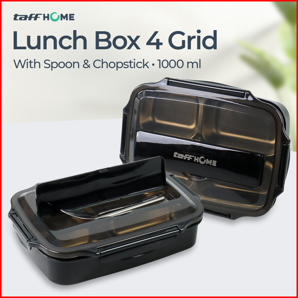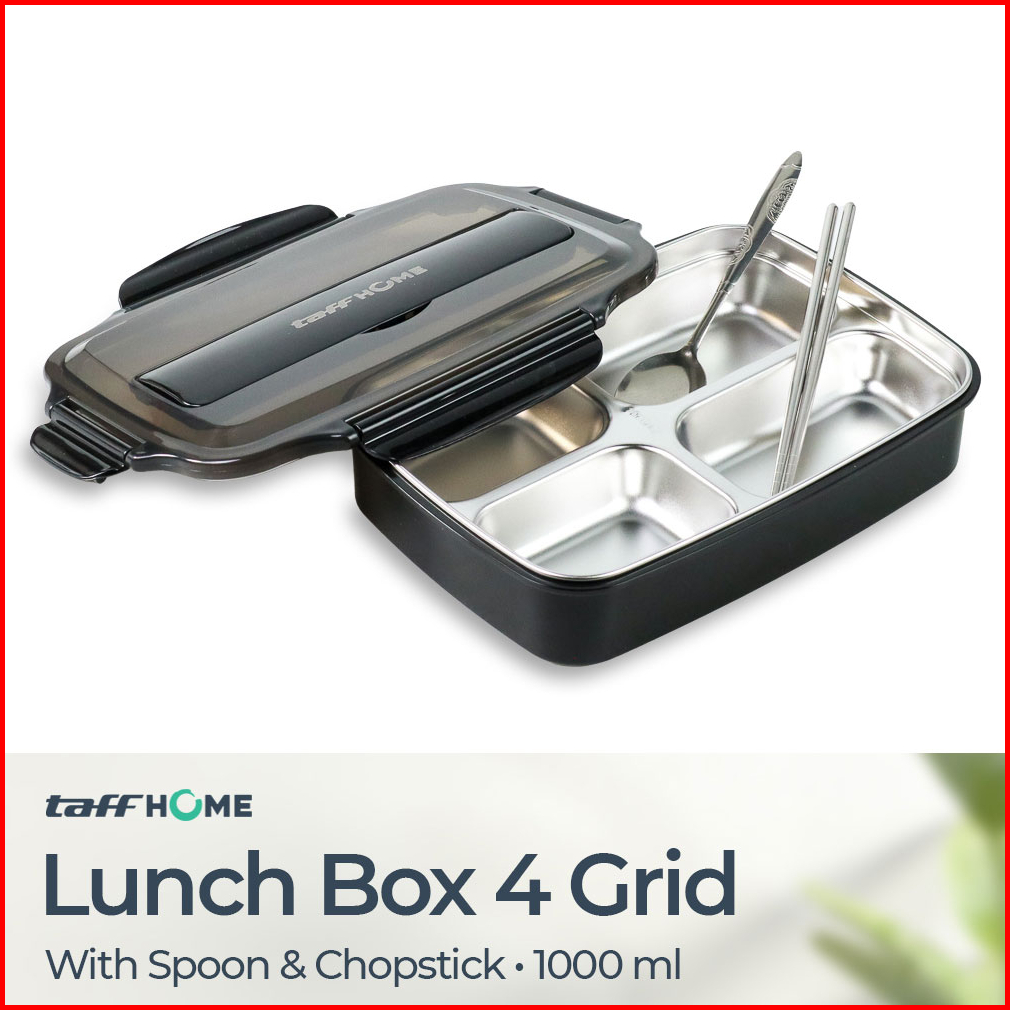 Taffhome Kotak Makan Lunch Box 4 Grid Stainless Steel 304 1000 Ml With Spoon Chopstick - Lb0919