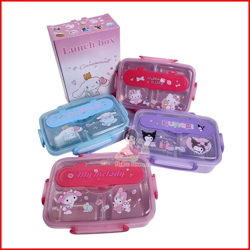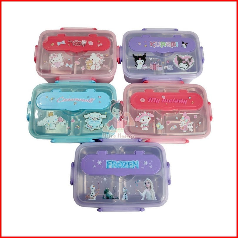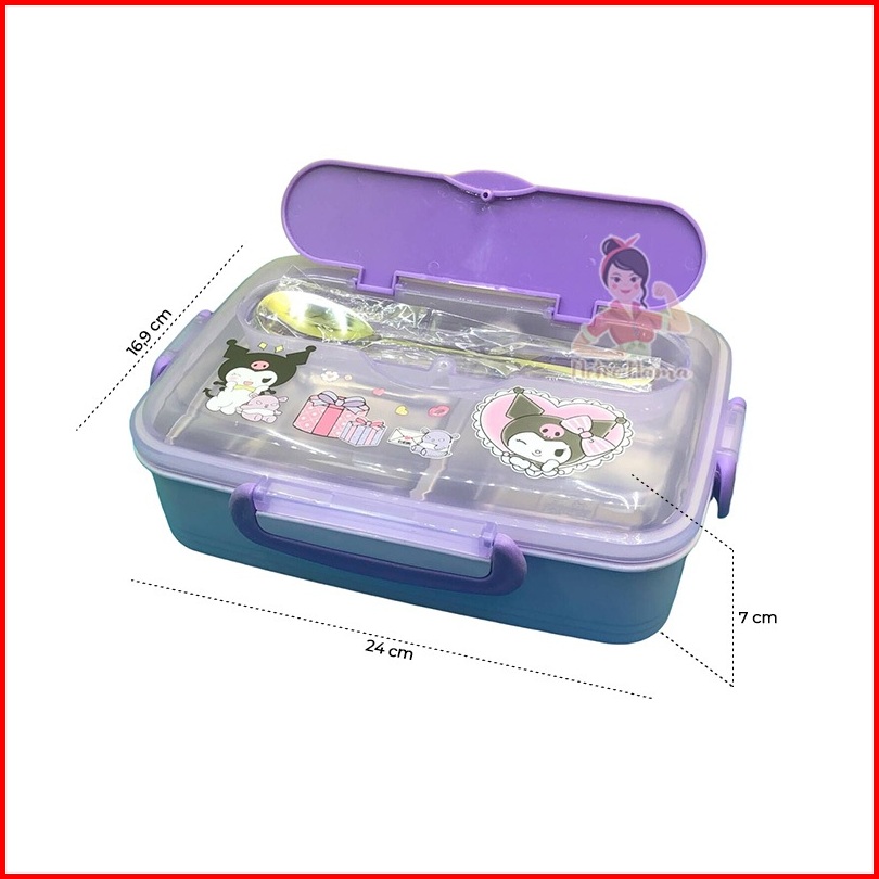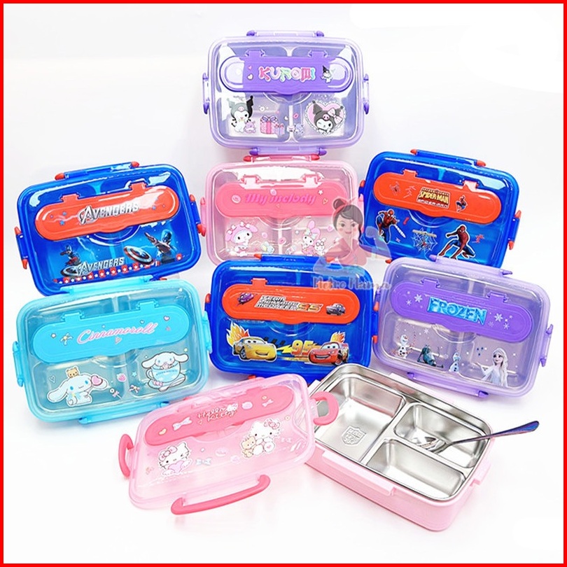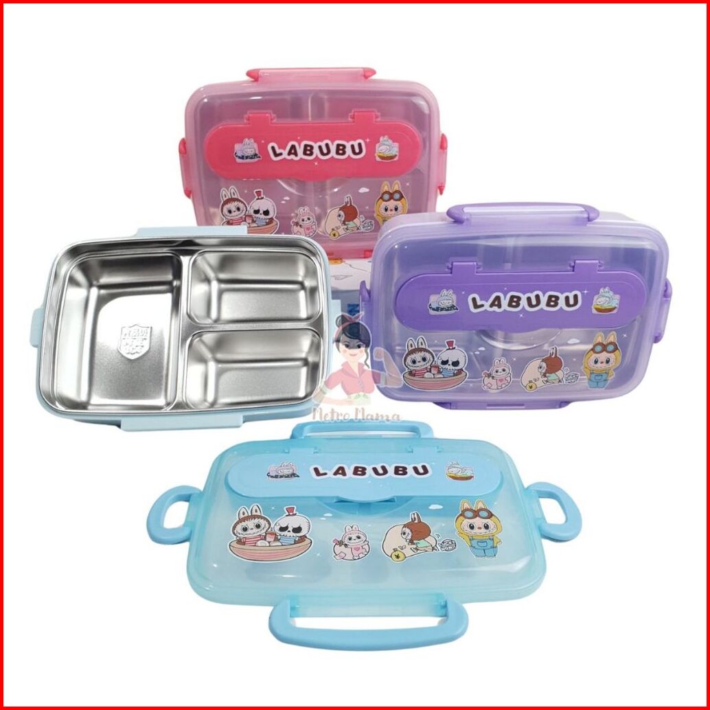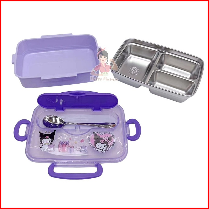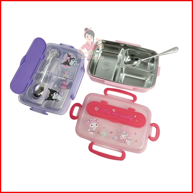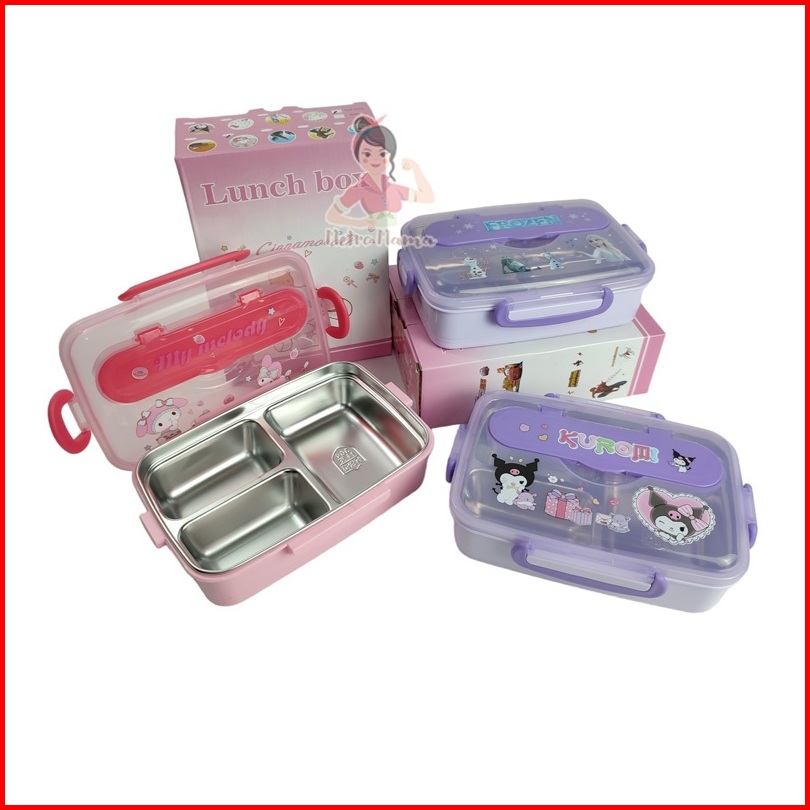 Kotak Makan 3sekat Stainless Steel 304 Labubu Hellokitty Kuromi Cinnamoroll Besar Anti Tumpah 1200ml