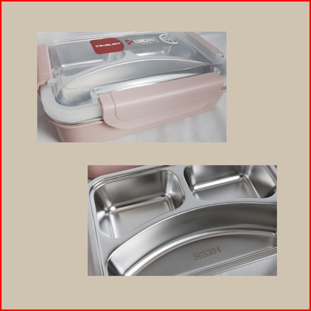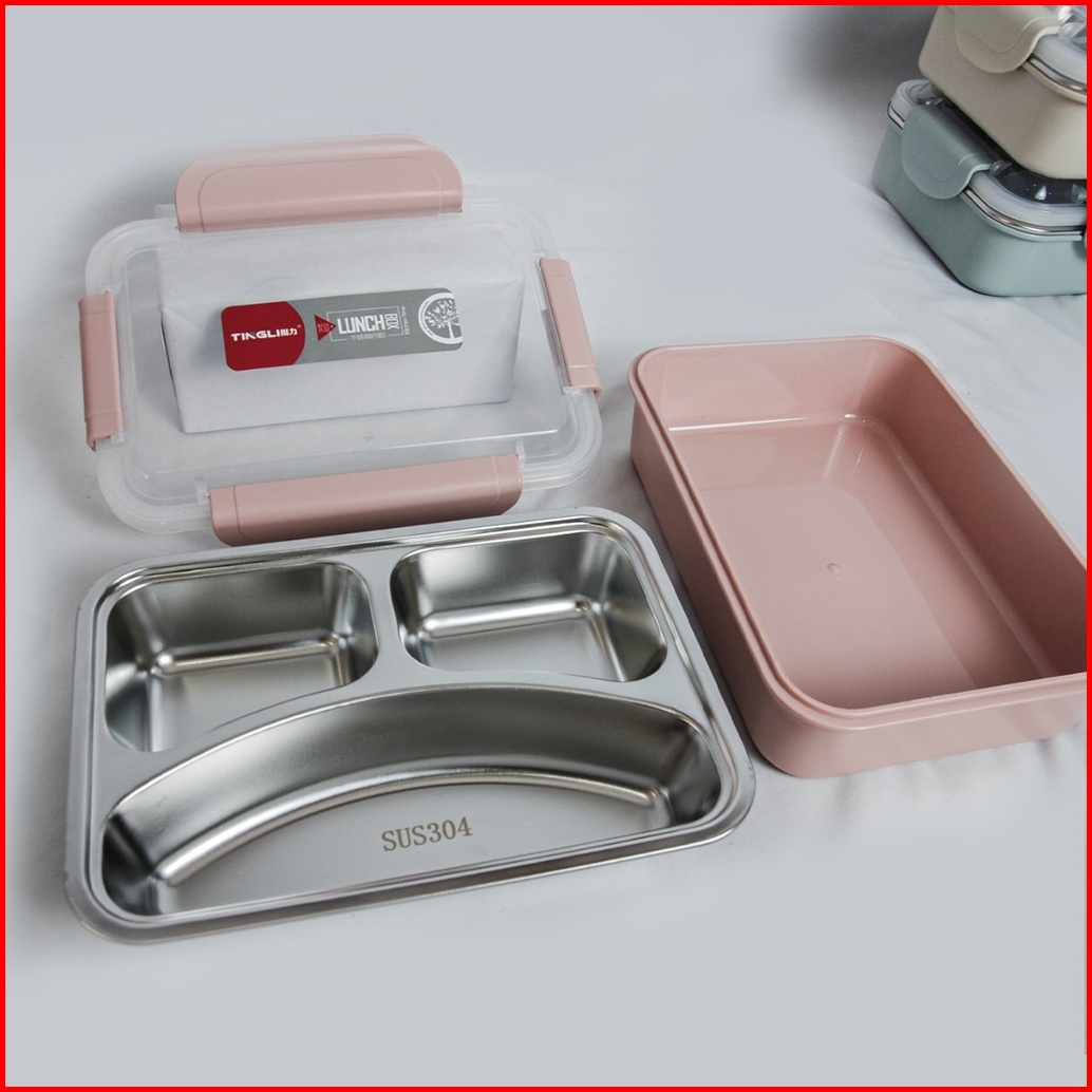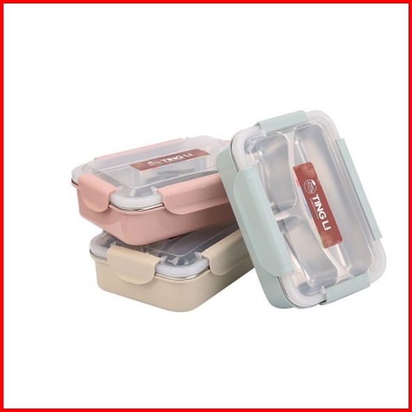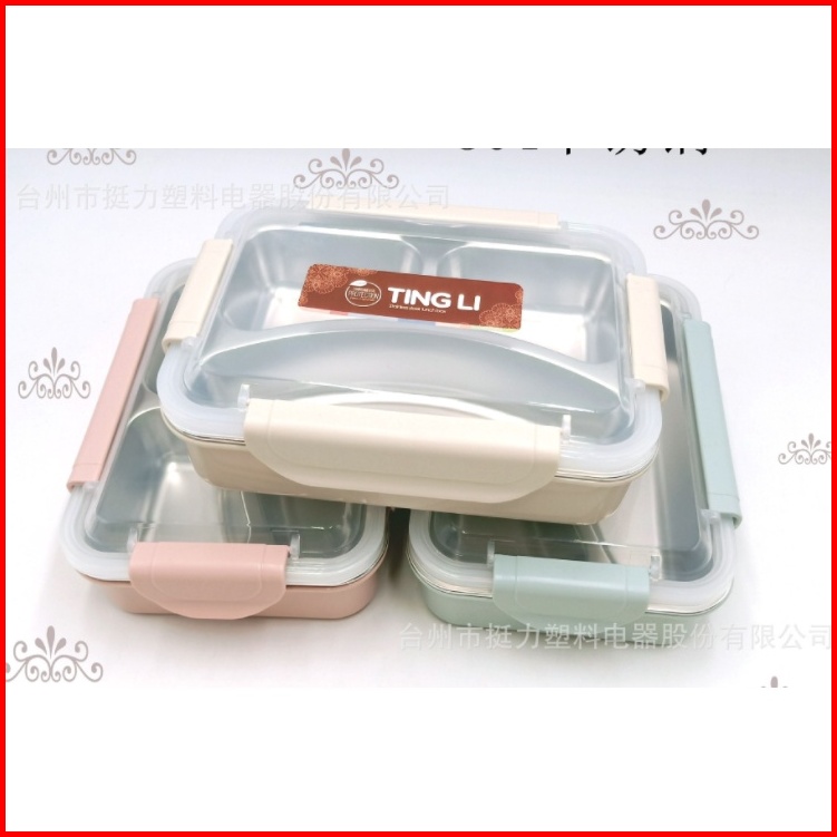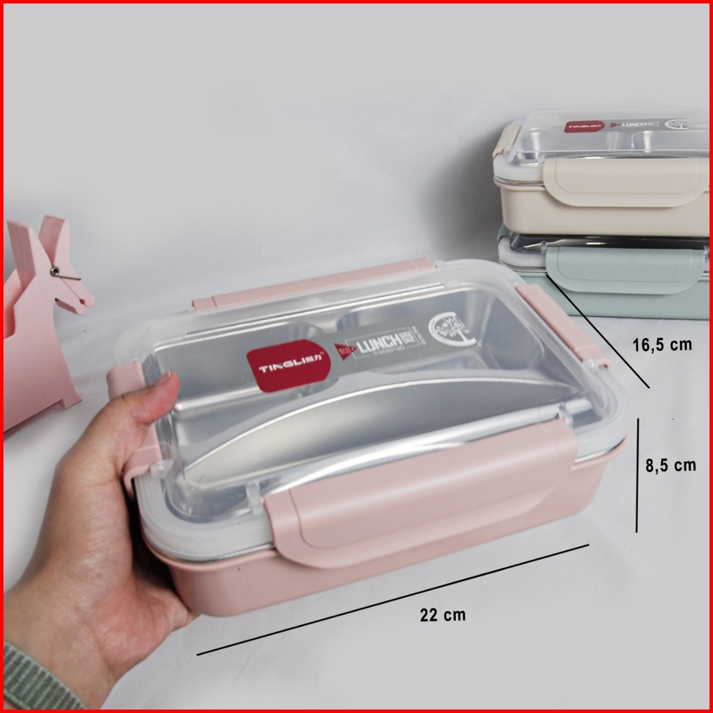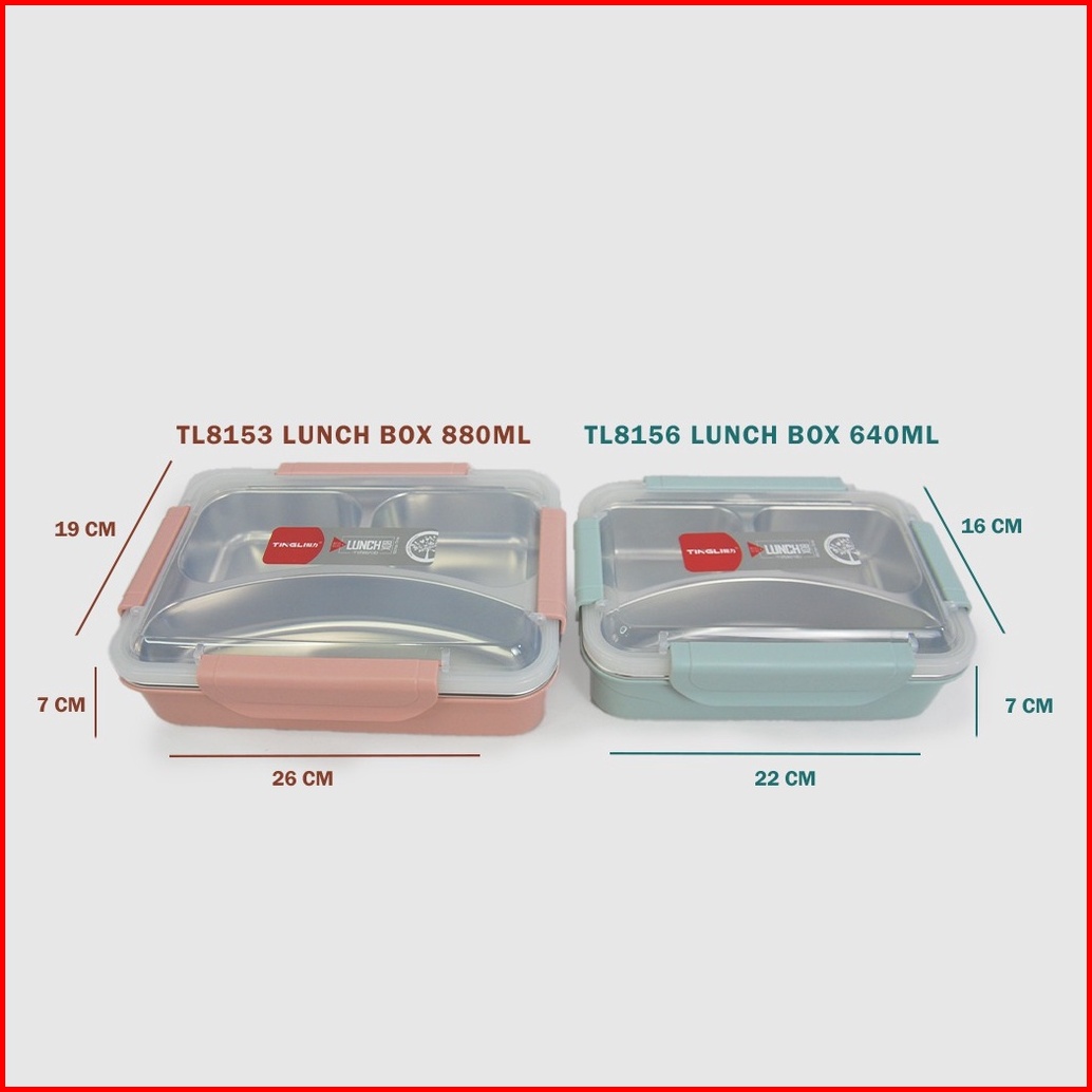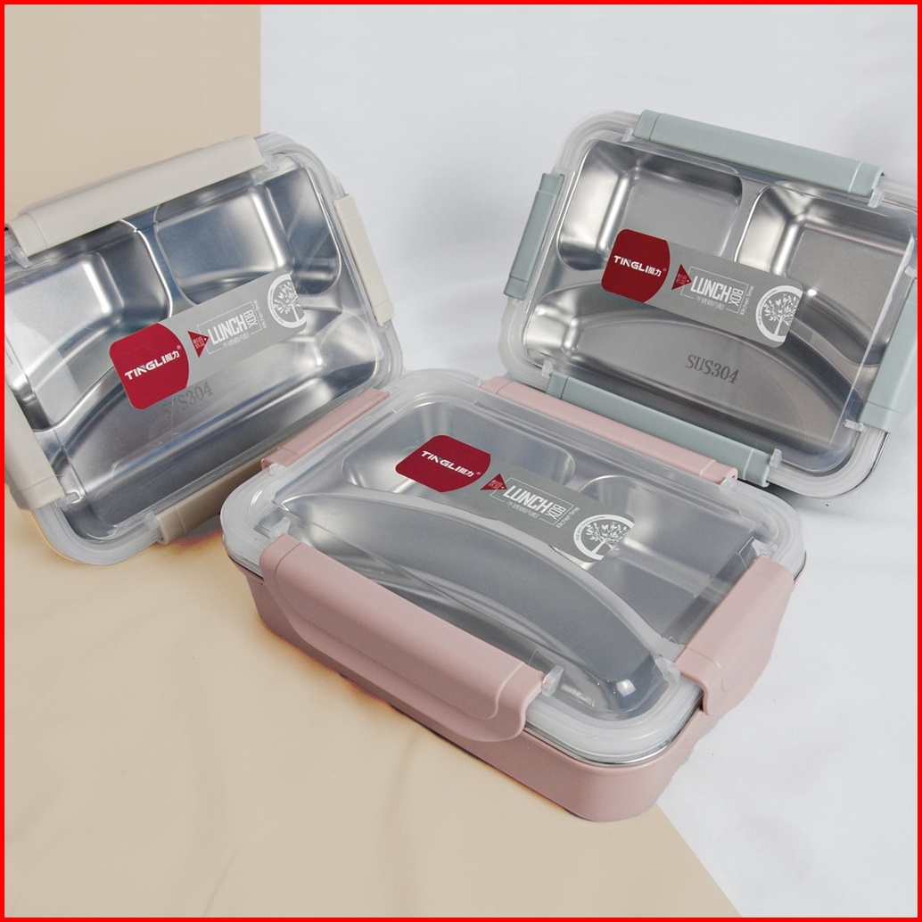 Tingli Rectangular Stainless Steel Lunch Bento Sekat 3 Kotak Makan Stainless 640ml Tl8156 Tl8153
