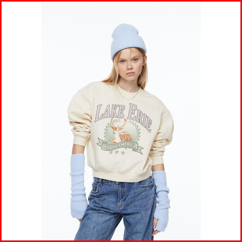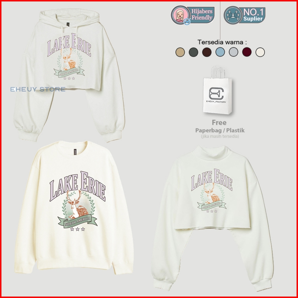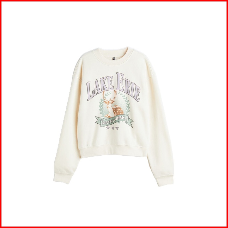 Crewneck Lake Erie Cream Reguler Size Broken White Sweater Wanita Soft Cream