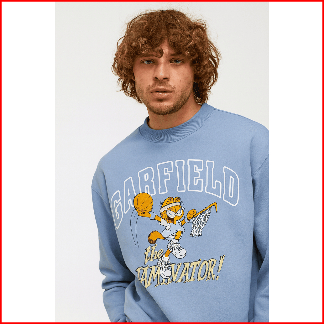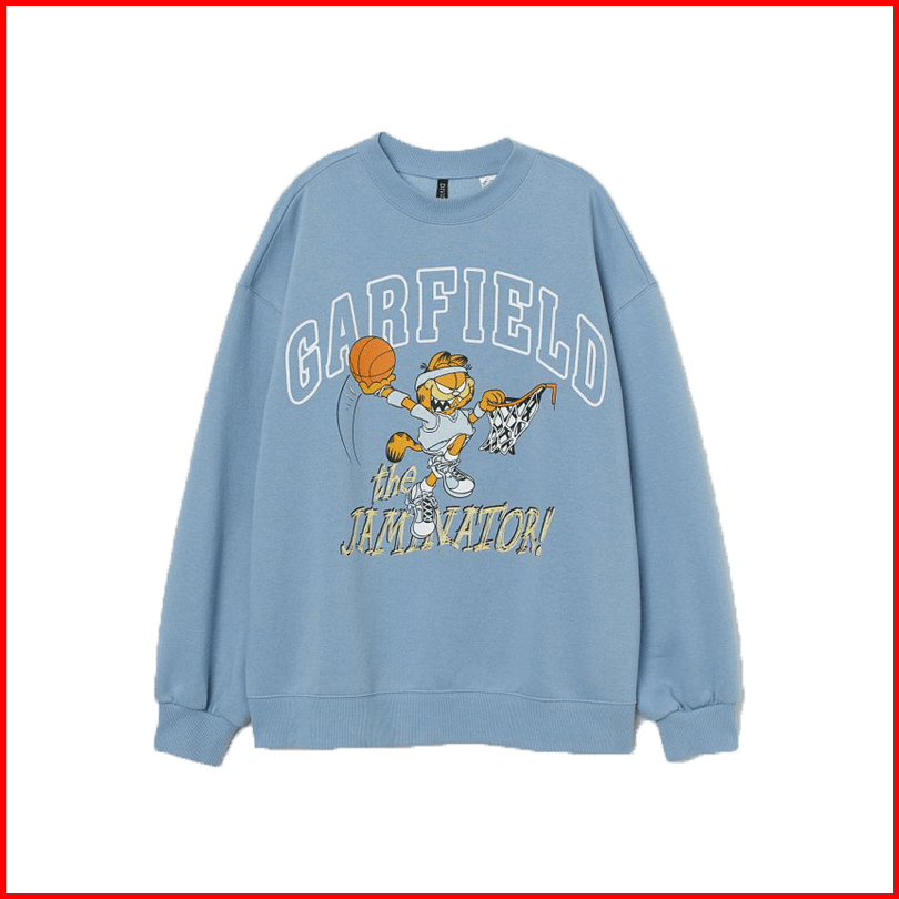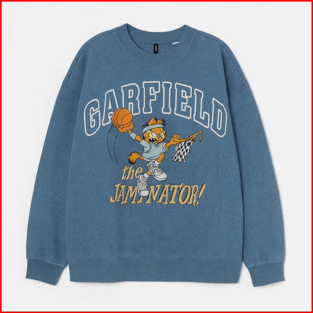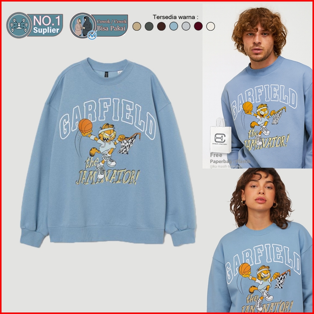 Crewneck Oversize Garfield Biru Pastel Sweater Wanita Blue Pigeon Kain Fleece Tebal Atasan Wanita Sweatshirt Wanita