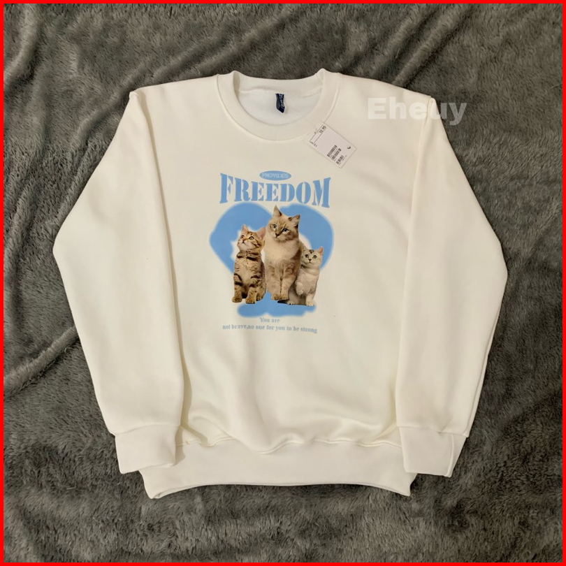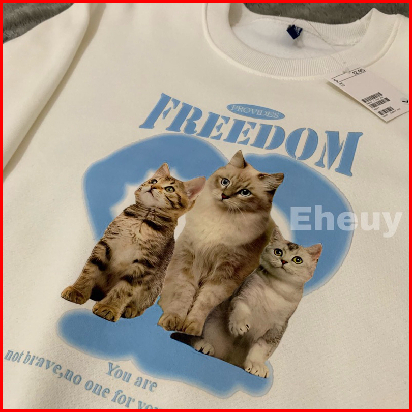Crewneck Oversize Cat Freedom Korean Style Broken White Sweater Oversize