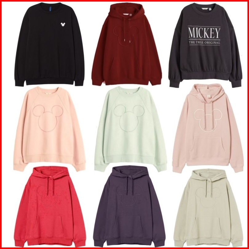 Hoodie H M Katun Wanita Hnm Mickey Mouse Disney Crewneck Sweater