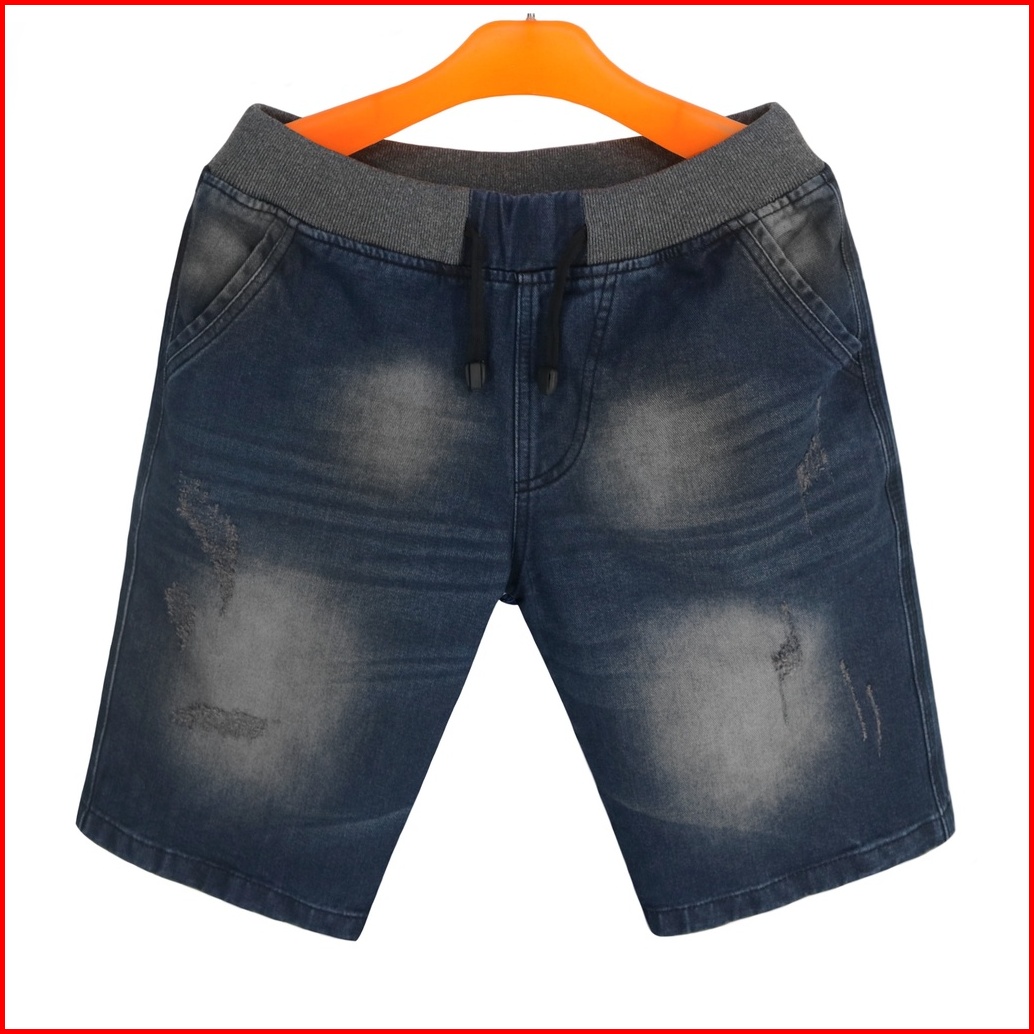 Celana Pendek Jeans Rip Pria Pinggang Karet