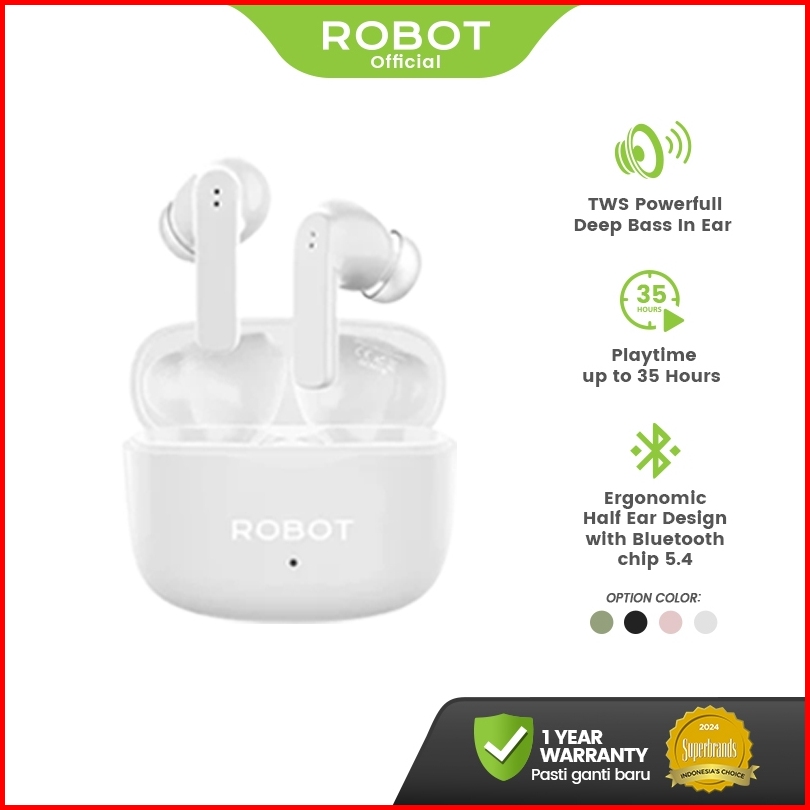 Robot Tws Wireless Earbuds Bluetooth 5.4 Powerfull Bass Earphone Bluetooth Tws Low Latency T70e Original - Garansi 1 Tah